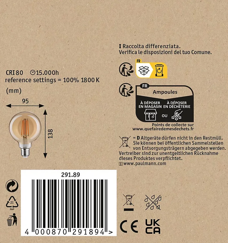 Les lampes LED à lumière dorée sont complètement tendance. L’ampoule sphérique édition 1879 d’une puissance de 6 watts diffuse sa lumière dans toutes les directions. L’ampoule idéale pour les suspensions et autres plafonniers. Bien plus qu’une belle décoration qui attire le regard elle crée de surcroît – grâce à agréable une température de couleur dorée – une atmosphère intime similaire à une lueur de bougie et peut être utilisée dans n’importe quelle douille E27 courant. Le commutateur mural permet de grader l’ampoule à 3 niveaux différents pour une facette supplémentaire de conception.