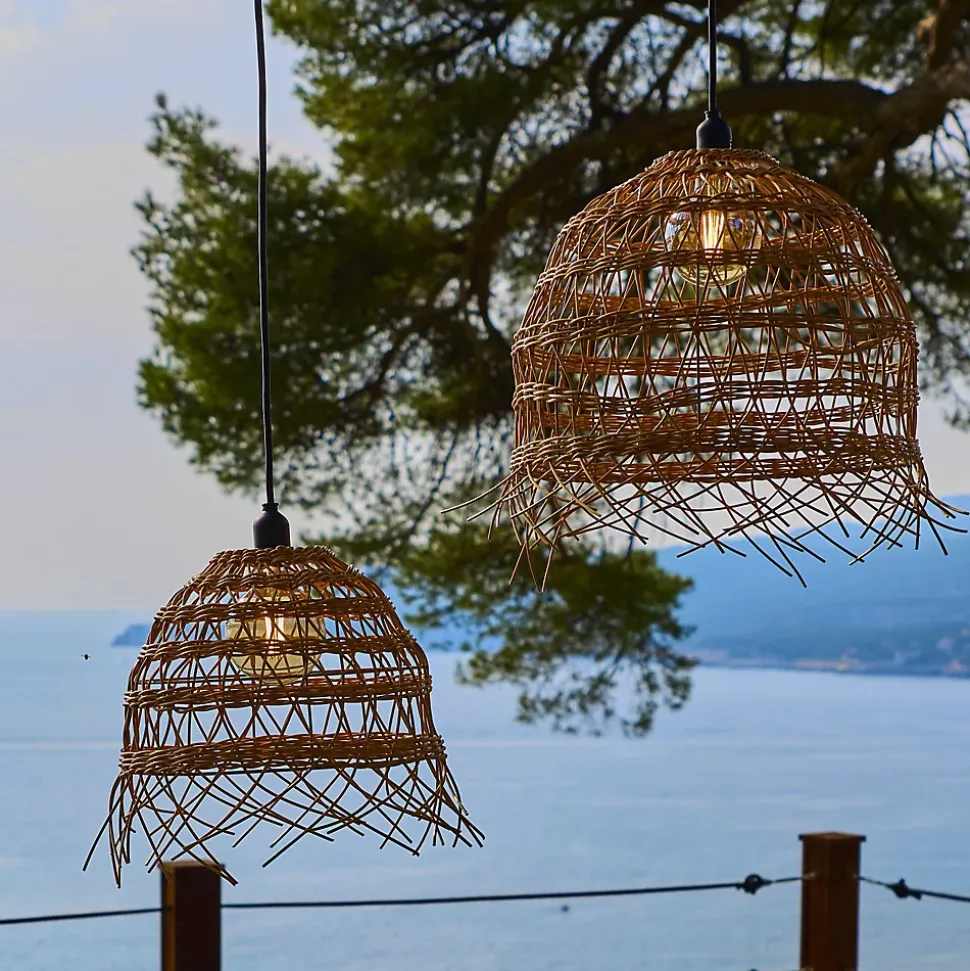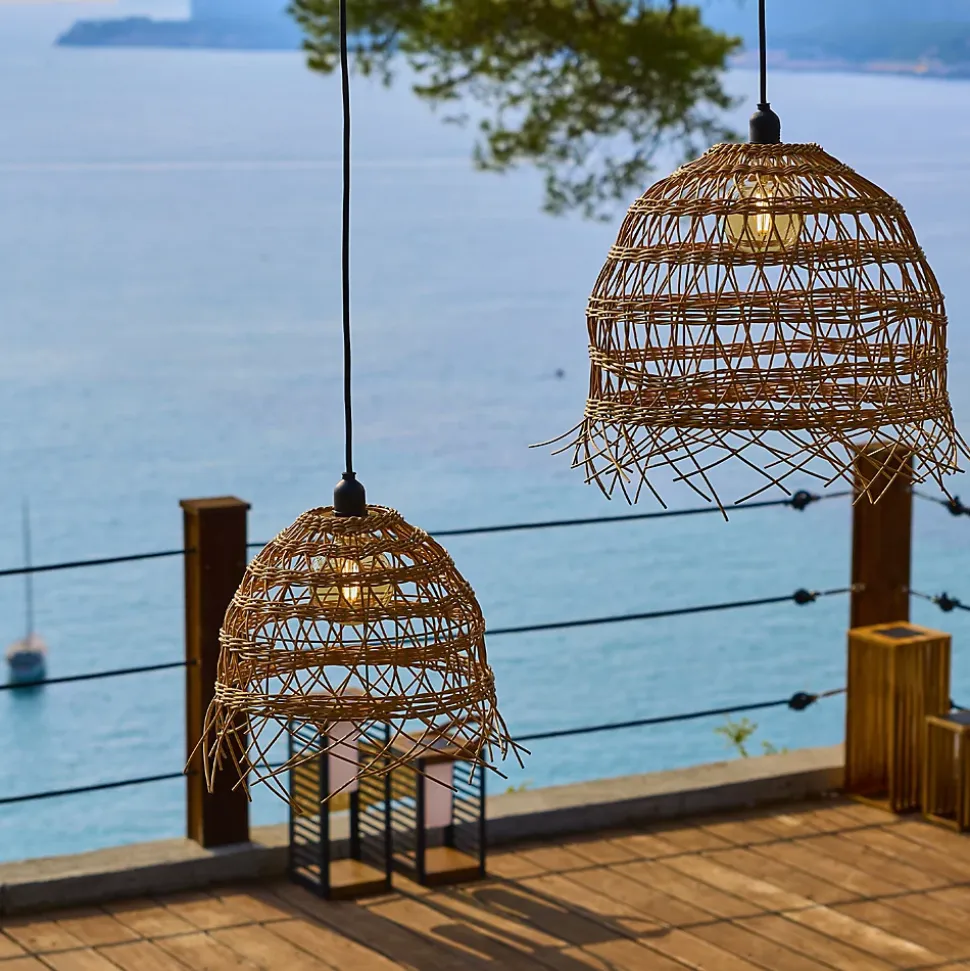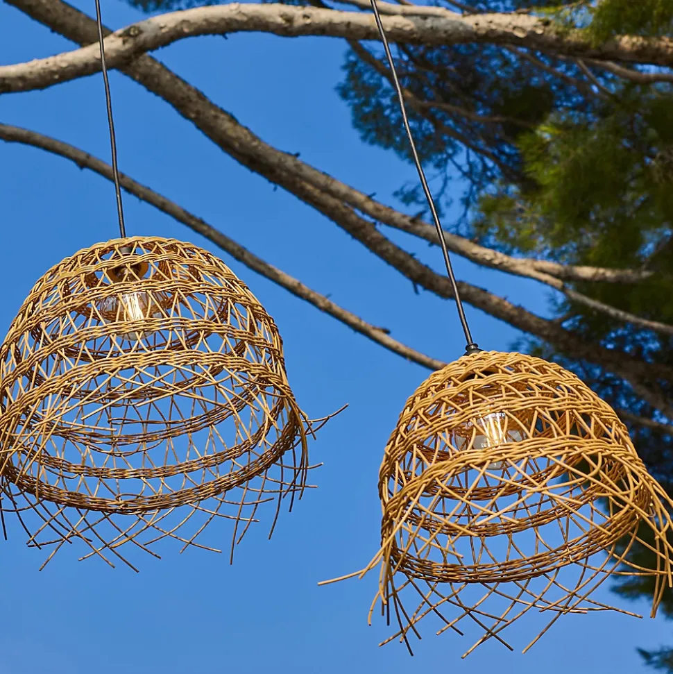 Le lot de 2 abat-jour en polyrotin Havana Long se compose de 2 pièces aux dimensions complémentaires pour créer une ambiance chaleureuse et élégante. Fabriquées en polyrotin résistant, ces suspensions imitent à la perfection l’aspect naturel du rotin tout en offrant une durabilité exceptionnelle. Grâce à leur certification IP44, elles supportent parfaitement l’exposition au soleil et à la pluie, ce qui les rend idéales pour sublimer une pergola, une terrasse ou un salon de jardin. Chaque pièce intègre un cerclage métallique offrant une flexibilité totale dans le choix de la source lumineuse. Que vous optiez pour un éclairage secteur classique, une solution solaire hybride durable ou une ampoule rechargeable nomade, le modèle Havana s’adapte à toutes vos envies. Ce produit de qualité répond aux normes européennes et garantit un style bohème immédiat à vos espaces intérieurs et extérieurs, alliant esthétique naturelle, robustesse et facilité d’entretien.