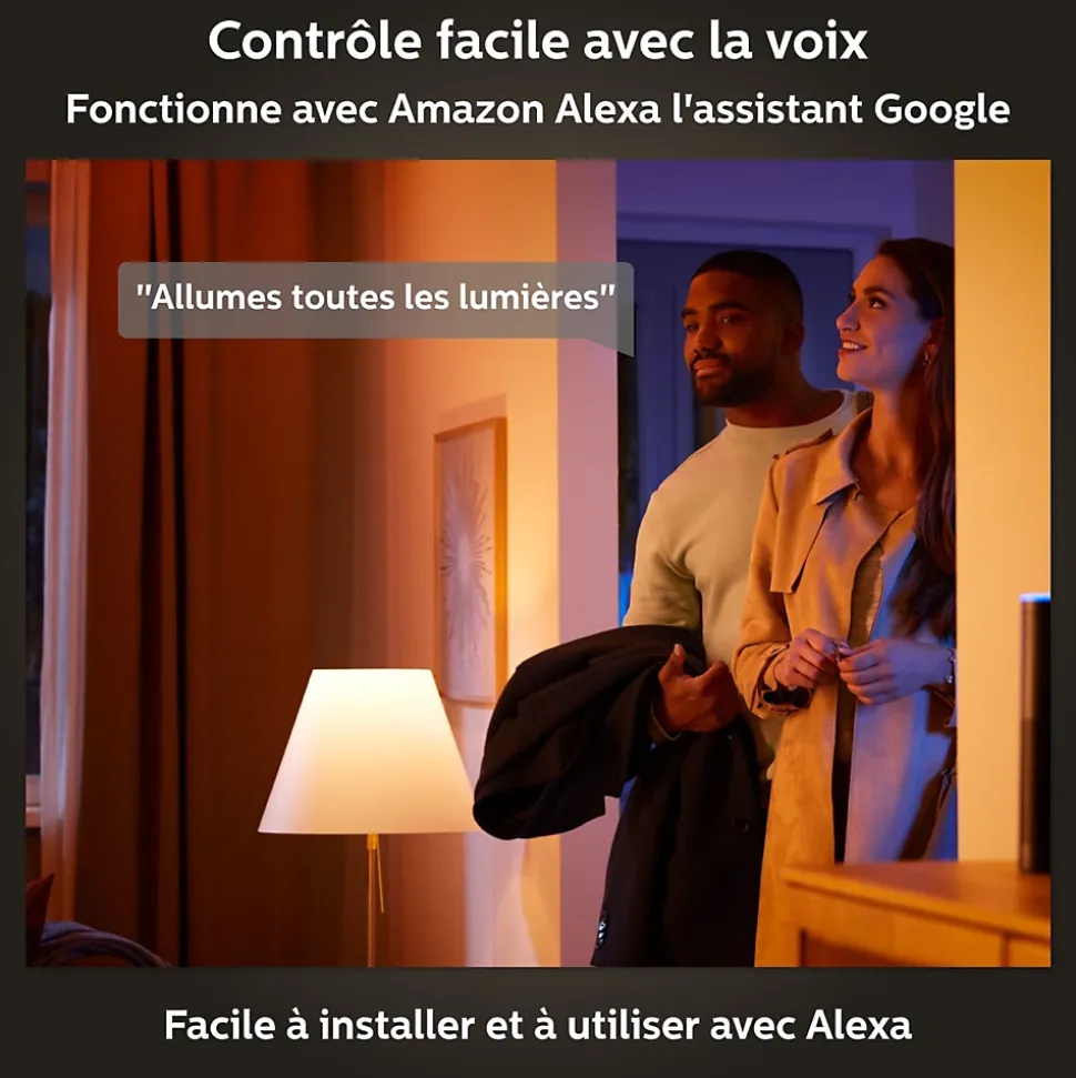 - Contrôle simple – Contrôlez depuis un accessoire Hue, votre mobile ou via votre assistant vocal.