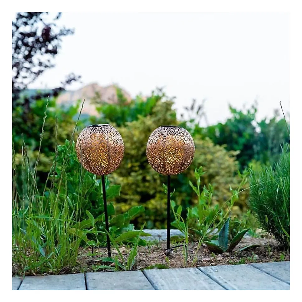 Le lot de 2 balises solaires Agadir apporte un style oriental élégant à votre extérieur avec une finition couleur bronze. Chaque luminaire diffuse une lumière blanc chaud avec un flux de moins de 100 lumens, idéal pour baliser discrètement une allée ou un jardin. Leur batterie assure une autonomie technique de 8 heures après une charge solaire de 4 à 6 heures. Faciles à installer, ces balises se piquent directement dans le sol ou une jardinière. D’une hauteur de 45 cm pour un diamètre de 15 cm, elles sont certifiées IP44 pour résister aux éclaboussures et aux rayons UV, garantissant une solidité structurelle durable. Parfaite pour les repas en plein air, les apéritifs ou les soirées d’été, elle crée immédiatement une ambiance douce et accueillante. C’est un choix fiable pour illuminer vos moments de partage tout en ajoutant une vraie touche décorative.