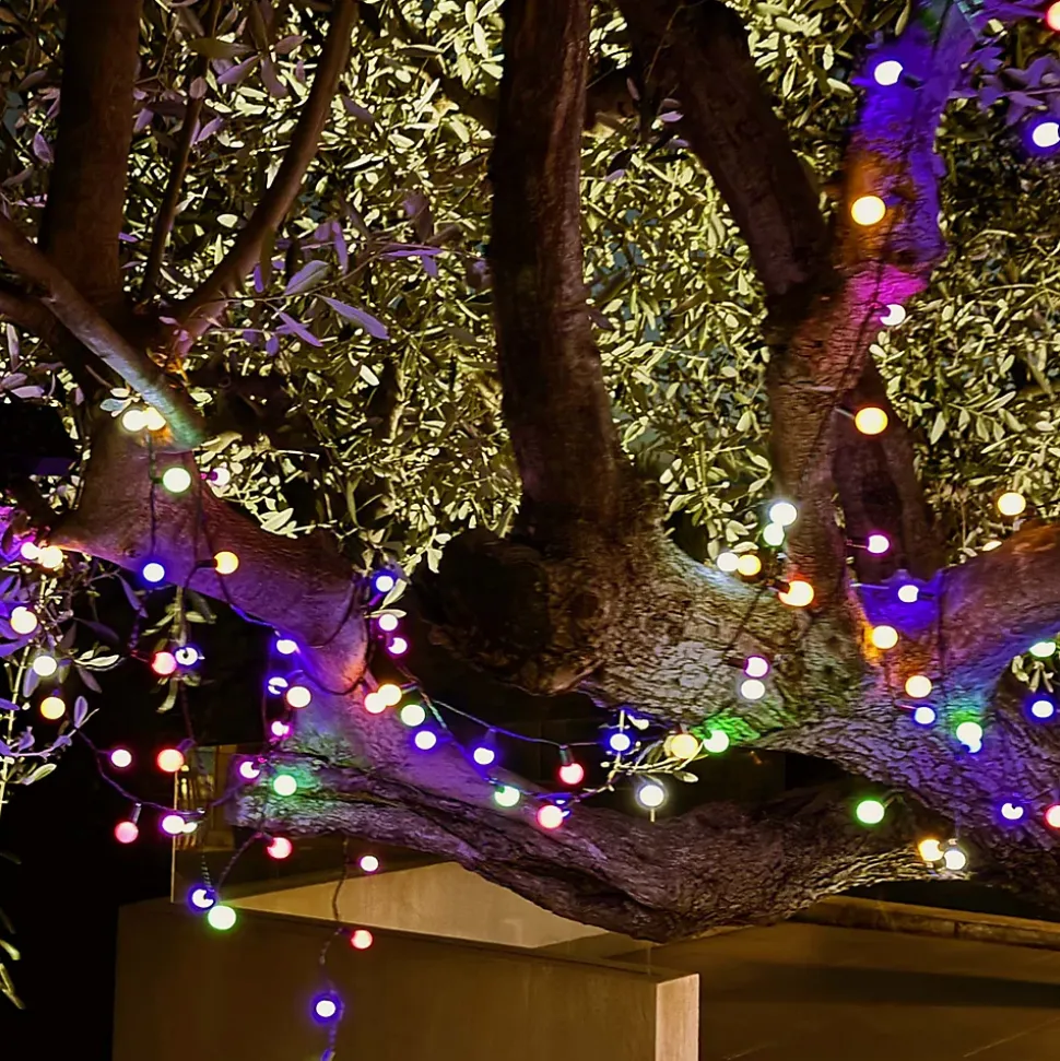 Le lot de 2 guirlandes lumineuses Billy RGB est une solution d’éclairage solaire sans fil et totalement autonome. Chaque guirlande mesure 10,90 mètres de long et intègre 100 mini ampoules rondes multicolores (bleu, rose, orange, violet et vert), espacées de 10 cm. Conçues pour l’utilisation en intérieur comme en extérieur (IP44, résistante aux UV), ces guirlandes sont parfaites en toutes saisons. Chaque guirlande est alimentée par l’énergie solaire (temps de charge de 8 heures) et offre une autonomie impressionnante pouvant aller jusqu’à 8 heures. Elles procurent une luminosité chaleureuse (35 lumens) grâce à leur base LED intégrée à l’intérieur de ses globes multicolores. Le lot totalise 21,80 mètres de longueur et 200 petites ampoules, assurant une décoration tendance, originale et adaptable à toutes les situations.