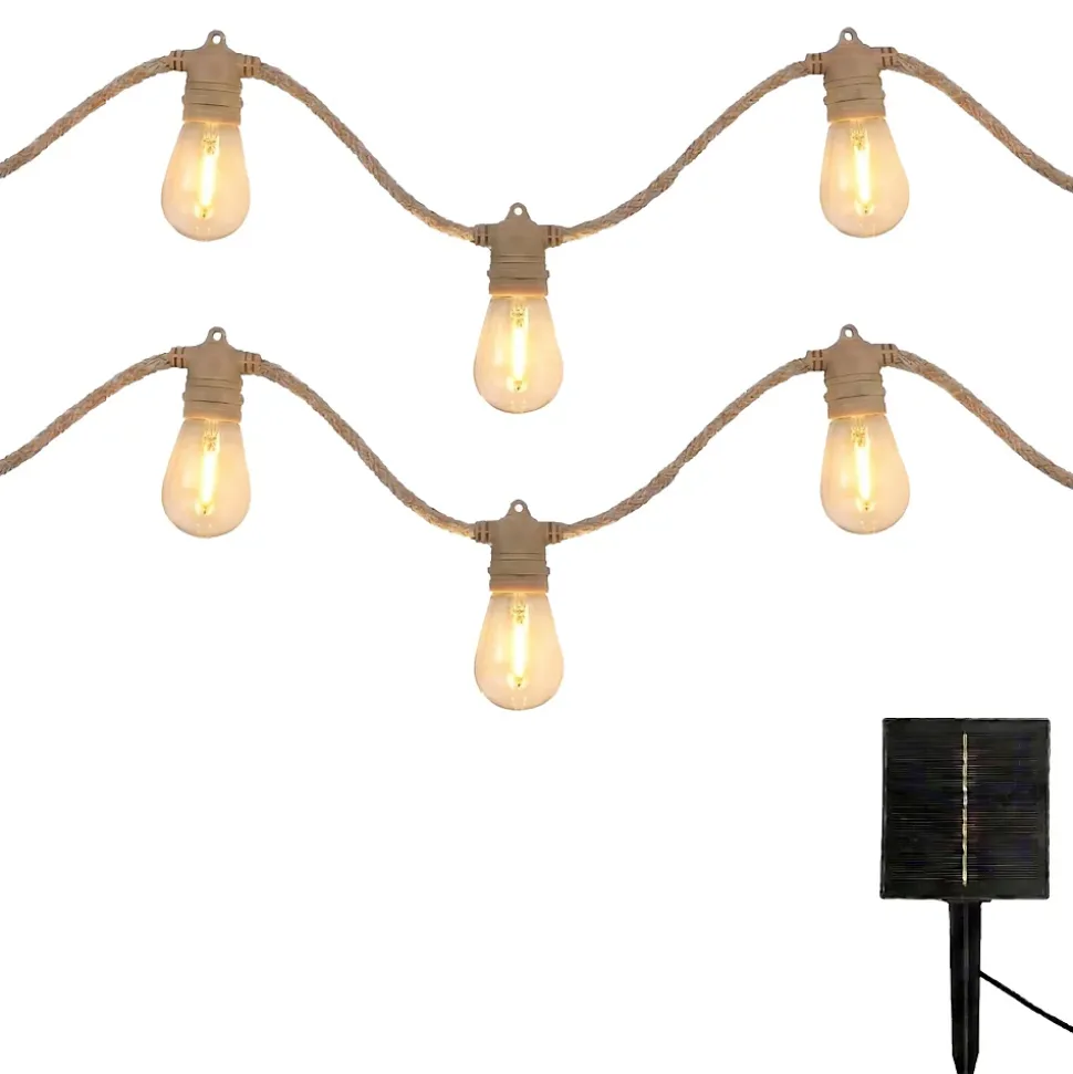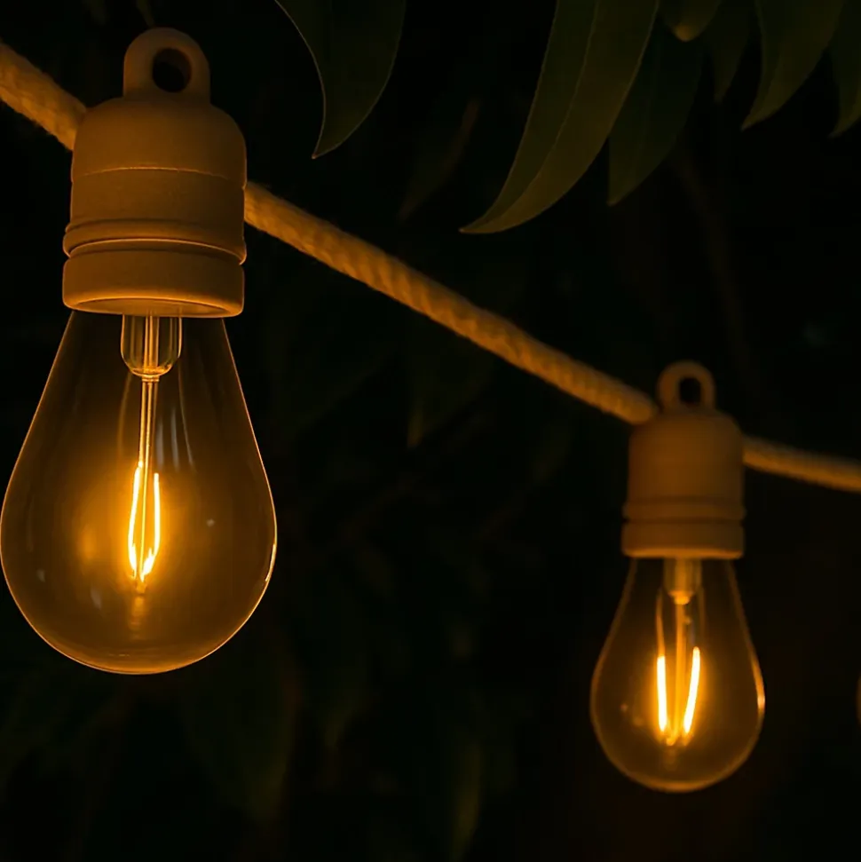 Ce lot de 2 guirlandes solaires Fantasy Cord Solar forme un ensemble hybride idéal pour sublimer vos extérieurs. Une fois raccordées, elles offrent une longueur totale de 13 mètres, parfaite pour décorer une terrasse ou un jardin. Le lot est doté de 20 ampoules remplaçables à filament LED blanc chaud qui créent une atmosphère naturelle et conviviale. Conçue pour durer, elle est certifiée IP44 et résiste aux rayons UV. Avec une luminosité puissante de 480 lumens, elle diffuse un éclairage chaleureux adapté à toutes les occasions. Ce système extensible vous permet même de connecter jusqu’à trois guirlandes au total. Profitez d’une installation simplifiée et d’un rendu esthétique unique pour transformer vos repas et fêtes en plein air en moments d’exception, alliant performance et élégance.