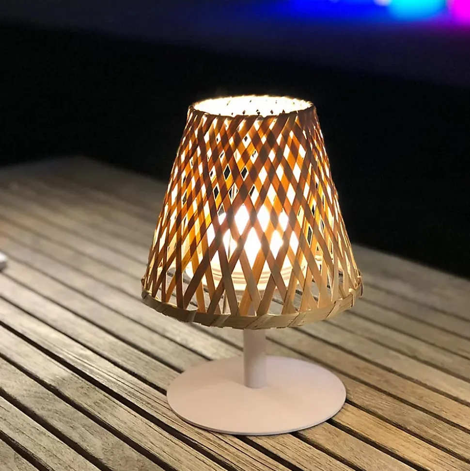 Le Lot de 2 Lampes de Table LED Sans Fil Ibiza offre une solution d’éclairage nomade au design bohème avec pied en acier et abat-jour en bambou trèssé. Ces 2 lampes autonomes apportent une touche originale à votre décoration intérieure ou extérieure. Équipées d’une base LED blanc chaud/froid à intensité variable, elles proposent un flux de plus de 100 lumens adaptable. Leur batterie rechargeable offre une autonomie de 8 heures après une charge de 4 à 6 heures par câble USB. L’abat-jour en bambou ø19x H26cm est certifié IP44 pour résister aux éclaboussures et aux rayons UV, idéal pour la terrasse ou le salon.. Profitez d’un éclairage nomade fiable avec une grande facilité d’entretien à l’eau tiède. L’entretien reste simple : un chiffon doux suffit pour conserver un rendu soigné au fil des saisons. Parfaite pour les repas en plein air, les apéritifs ou les soirées d’été, elle crée immédiatement une ambiance.