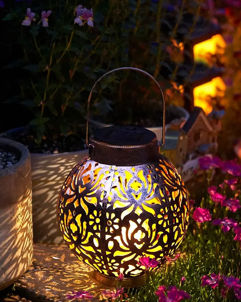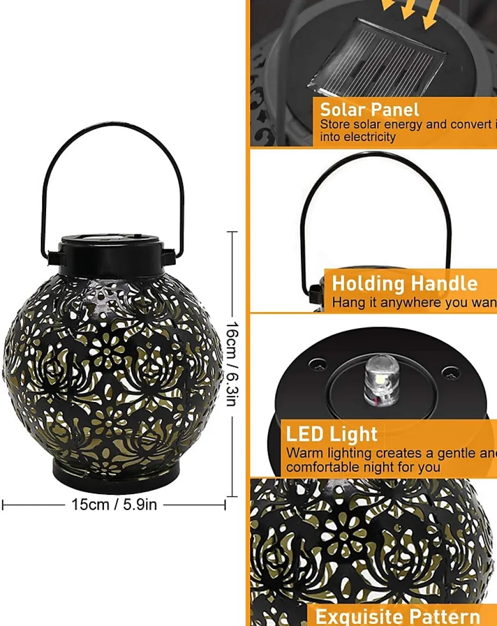 Impressionnante : dotée d’une construction creuse distinctive, cette lanterne crée un jeu captivant de lumière chaude et de motifs complexes. Les ombres qui en résultent sont vraiment remarquables, ce qui en fait un excellent ajout à divers environnements extérieurs, y compris les jardins, les cours, les terrasses, les porches, les pergolas et les clôtures.Polyvalent : avec un revêtement antirouille, la surface de la lanterne est très résistante à la corrosion, assurant une performance fiable dans les environnements extérieurs. Avec un indice d’étanchéité IP44, il peut résister à des conditions météorologiques difficiles. Sa poignée robuste permet des options de placement flexibles, que ce soit sur un rebord de fenêtre, sur le sol ou suspendu à un arbre, une vigne ou une clôture.