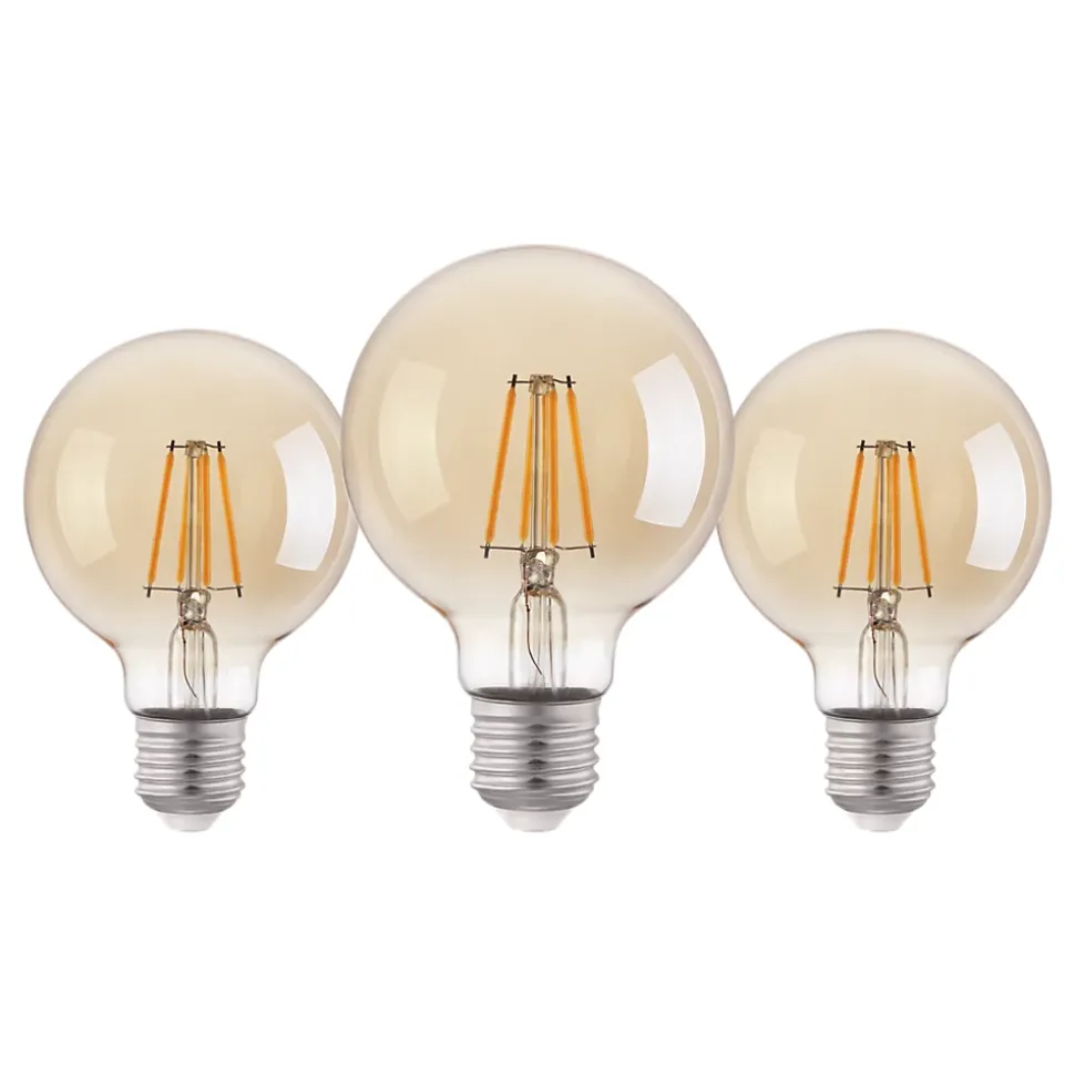 3 ampoules LED décoratives globe E27 400lm verre ambré, blanc chaud 12W Eglo