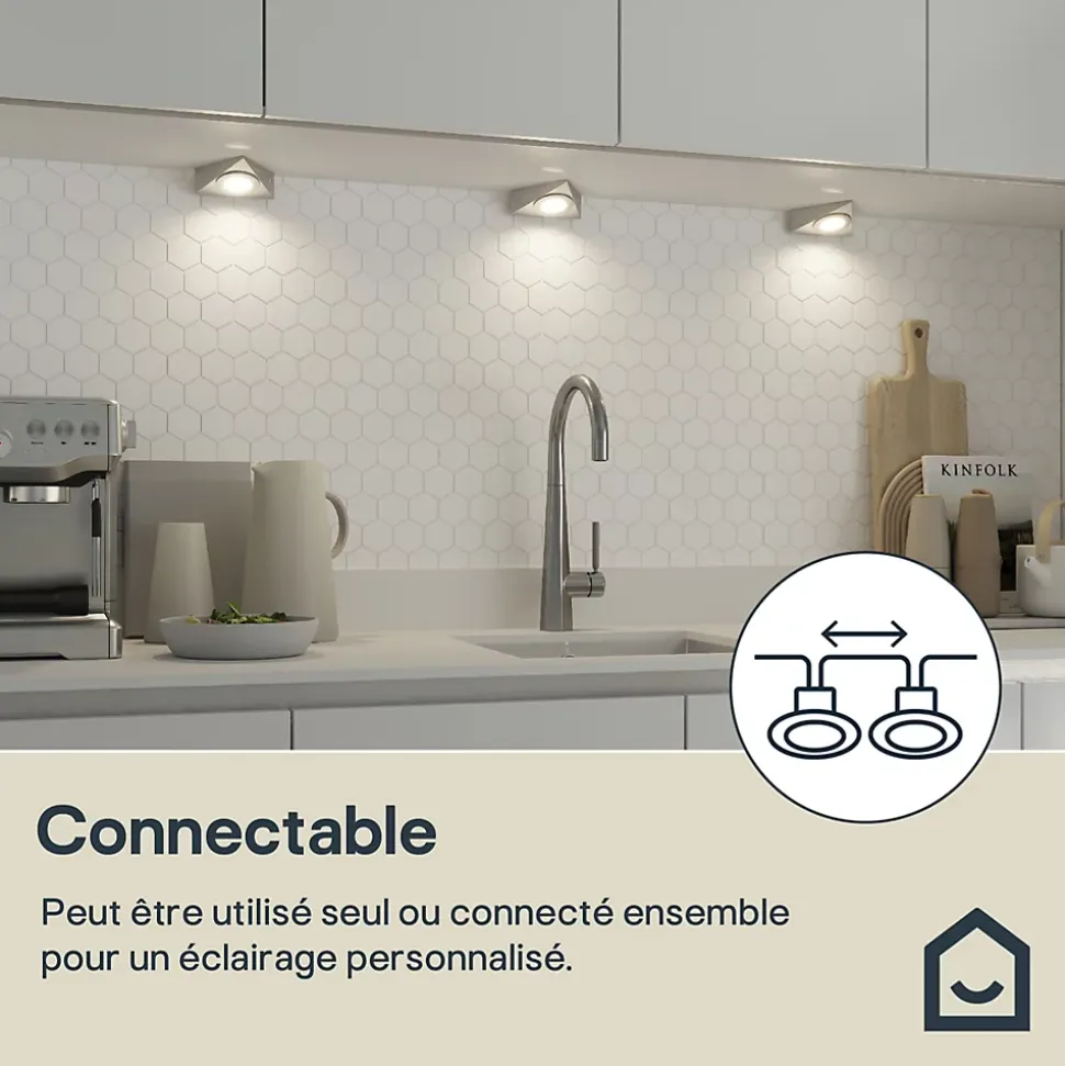- Reliez plusieurs éclairages de meuble entre eux pour une plus grande zone éclairée