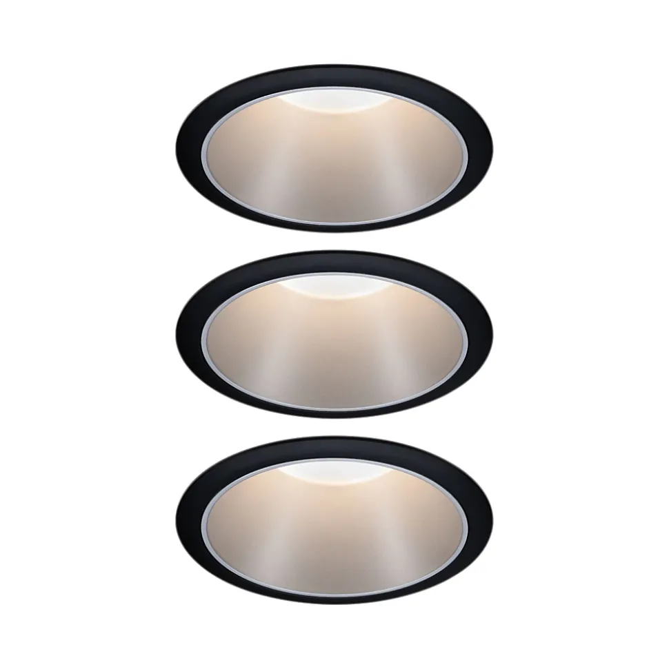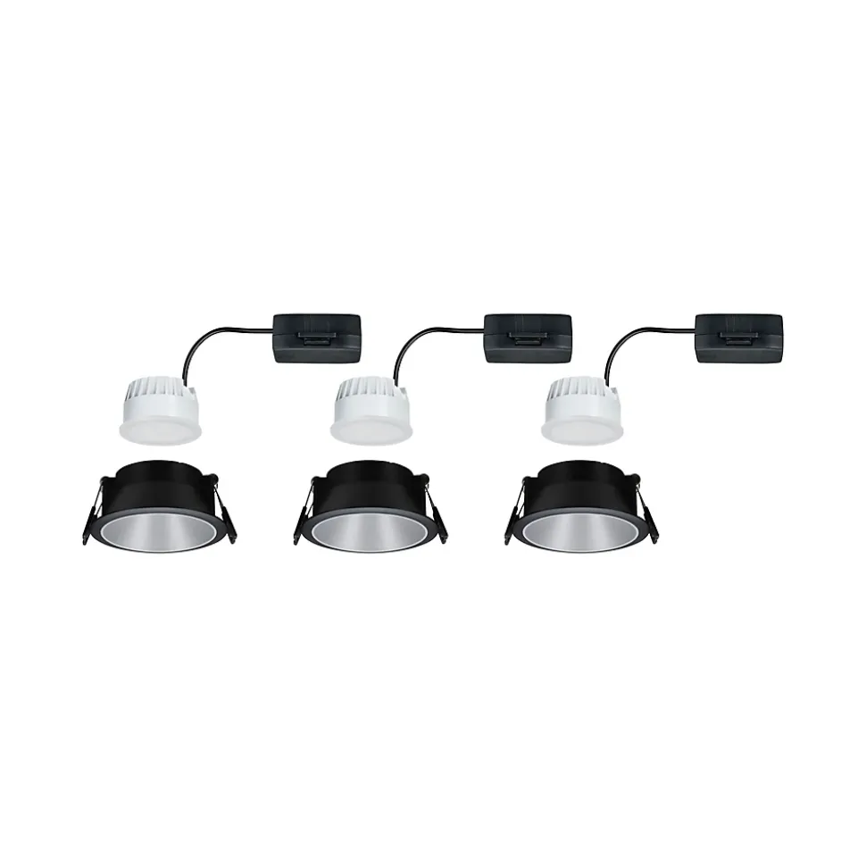 3 spots encastrables Cole LED intégrée blanc chaud IP44 3x470lm Ø8cm argent finition noire Paulmann