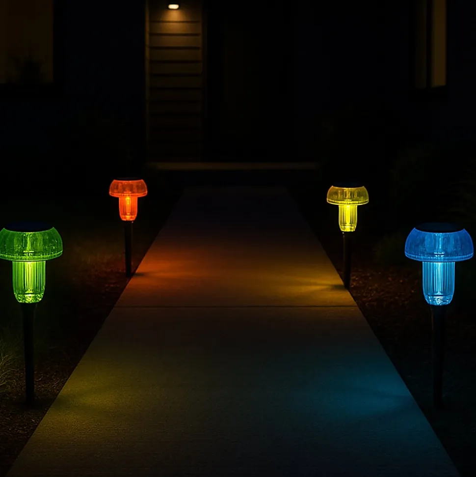 Apportez une touche festive à votre jardin avec le lot de 4 balises solaires Mushy en forme de champignons colorés. Chaque unité possède une tête de couleur différente (jaune, vert, bleu, rouge) diffusant une lumière LED vive. Ce format compact de 24 cm de hauteur s’installe facilement en plantant le pique dans le sol. Le capteur solaire intégré recharge la batterie la journée pour offrir une autonomie de 8 heures dès la nuit tombée. Certifiées IP44, ces balises en plastique durable résistent aux éclaboussures et aux rayons UV pour un usage extérieur fiable. Elles créent une ambiance conviviale sans éblouir, idéale pour mettre en valeur des plantes ou sécuriser un petit chemin. C’est un choix fiable pour illuminer vos moments de partage tout en ajoutant une vraie touche décorative. Pour un effet encore plus chaleureux, combinez-la avec d’autres sources de lumière et variez les hauteurs d’installation.