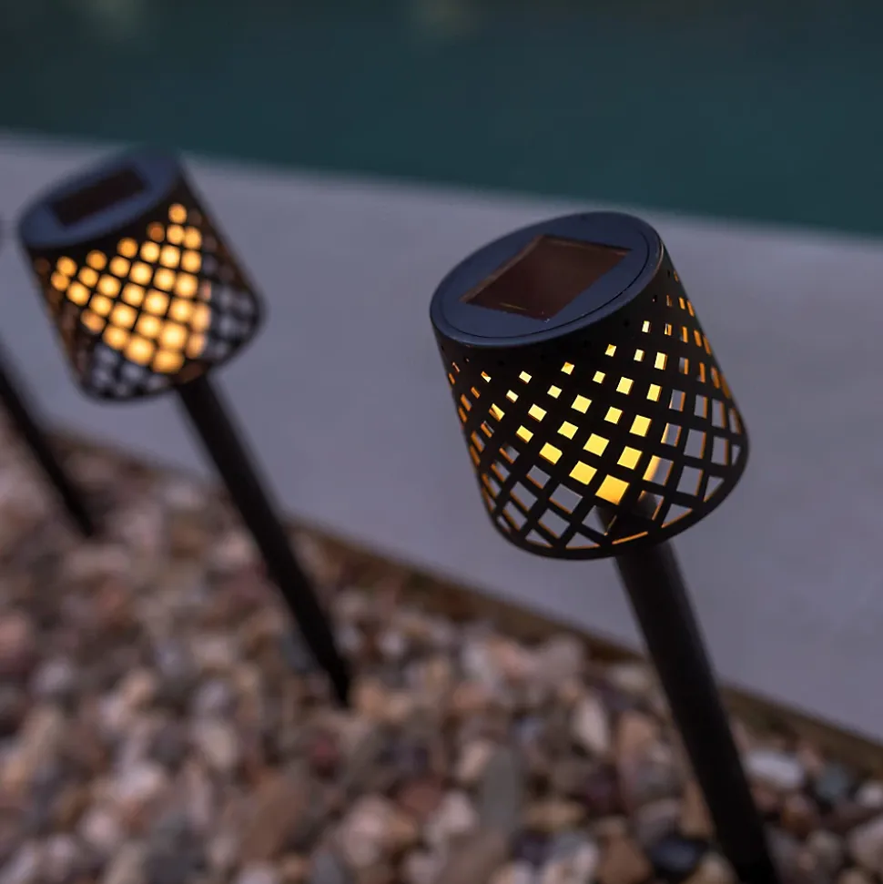 4 piques solaire LED intégrée Gretita noir 2lm 0,015W IP44 blanc chaud New Garden