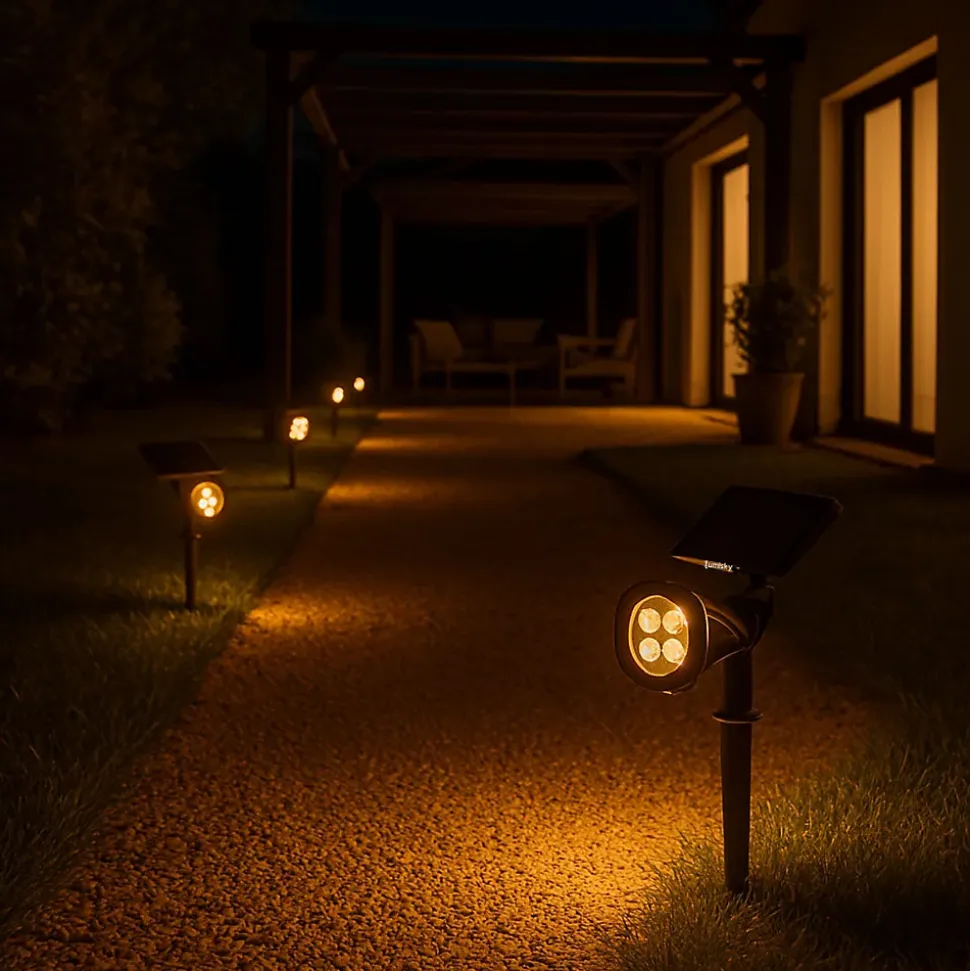 Le lot de 4 spots solaires LED Spiky Warm propose une solution d’éclairage extérieur blanc chaud créant une atmosphère chaleureuse avec une autonomie technique de 12 heures par unité. Ces luminaires sont parfaits pour baliser une allée, sécuriser un passage ou mettre en valeur vos massifs avec un flux lumineux de plus de 100 lumens. Chaque spot se recharge intégralement en 6 à 8 heures d’ensoleillement pour assurer une visibilité optimale. Certifiés IP44, ils résistent aux intempéries et aux éclaboussures, garantissant une utilisation fiable au jardin ou sur une terrasse. D’un design élégant, ils s’intègrent discrètement dans votre aménagement extérieur. Elle constitue aussi une excellente idée pour personnaliser une chambre, un salon ou un coin lecture avec une lumière cosy. Facile à intégrer à votre aménagement, elle apporte un point lumineux décoratif sans alourdir l’espace.