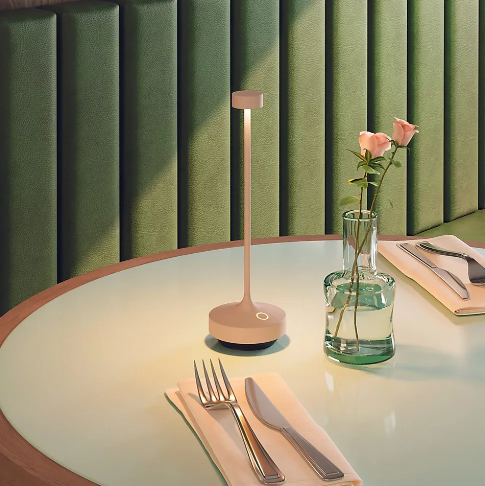 Sublimez vos réceptions avec ce lot de 6 lampes de table sans fil Ruby Cream au coloris beige crème très tendance. Chaque lampe en aluminium offre une silhouette fine avec un abat-jour de 7, 5 cm de diamètre et une hauteur de 25 cm, alliant robustesse et esthétisme chaleureux. Le plateau de chargement multiple par contact inclus permet de recharger simultanément les 6 unités sans aucun câble gênant, garantissant une autonomie de 8 heures pour éclairer vos soirées sans interruption. Avec un flux de 150 lumens et un variateur d’intensité sur 4 positions, chaque lampe permet de créer une ambiance conviviale et sur mesure pour vos convives. Certifiées IP65, elles sont totalement étanches aux éclaboussures et aux poussières, ce qui les rend parfaites pour un usage professionnel intensif en terrasse de restaurant ou au jardin sans aucun fil apparent sur vos nappes.