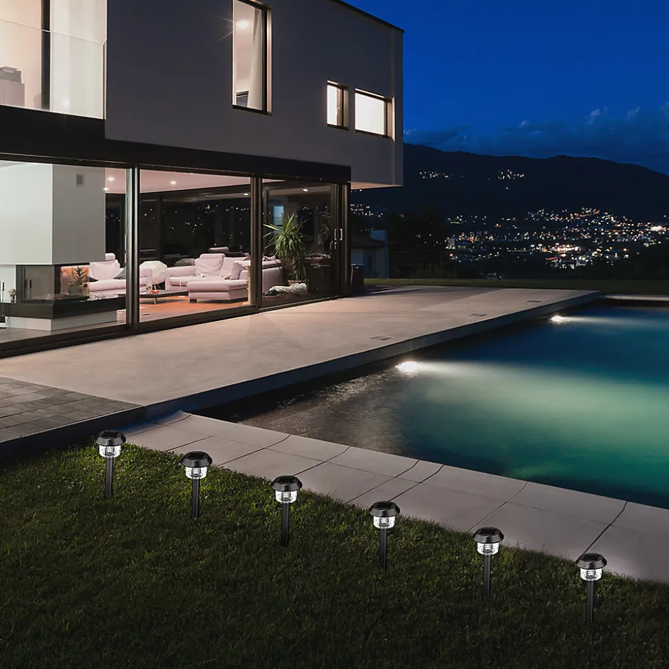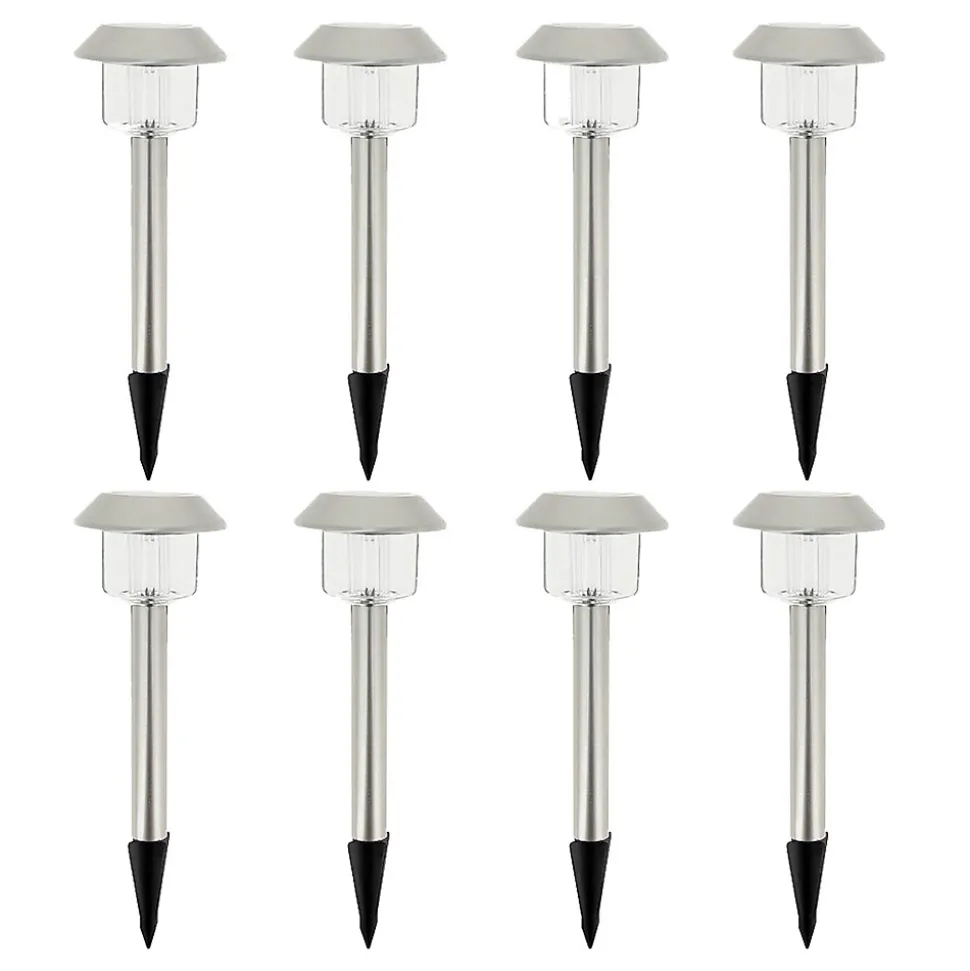 - Lot de 8 balises solaires LED blanc froid, design classique noir, faciles à planter