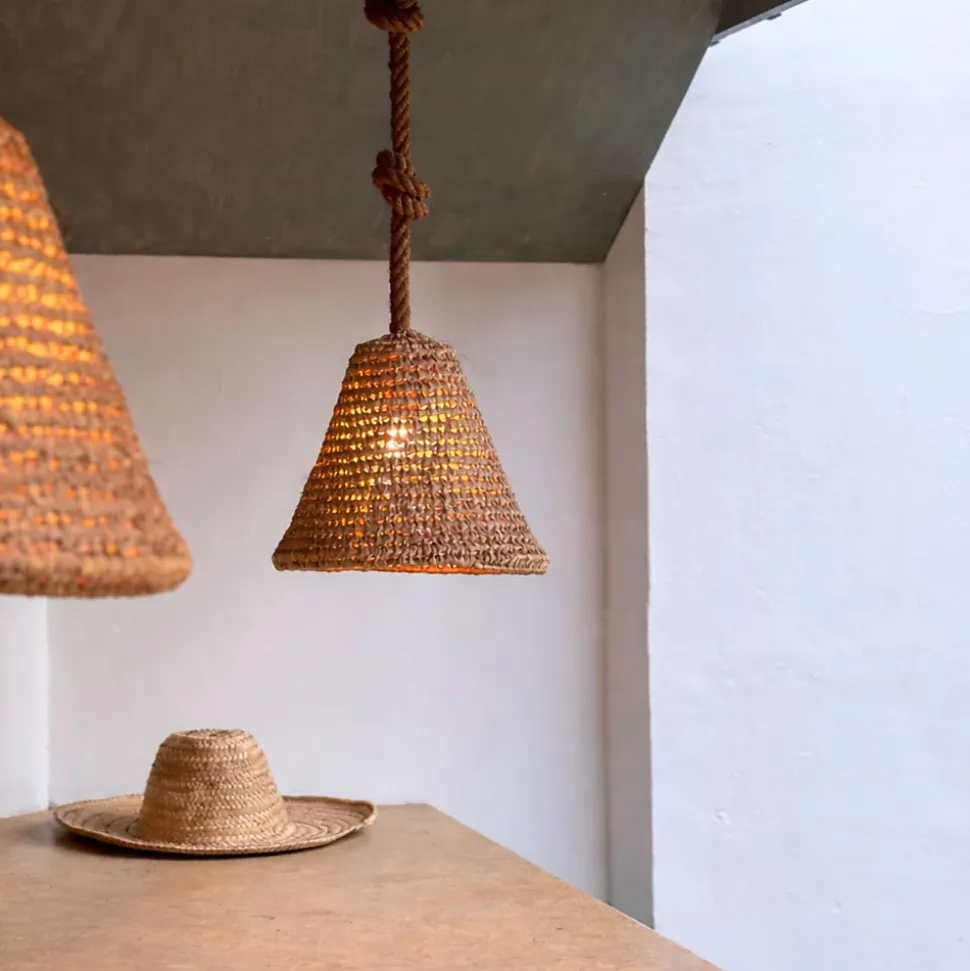 Abat-jour cône feuilles de palmier Apportez une touche naturelle et élégante à votre intérieur avec cet abat-jour en osier, inspiré des feuilles de palmier. Son tressage artisanal diffuse une lumière douce et chaleureuse, parfaite pour créer une ambiance bohème et apaisante dans n’importe quelle pièce. Caractéristiques : Matériau naturel : conçu en osier, il offre un rendu authentique et chaleureux. Design inspiré des feuilles de palmier : un tressage délicat qui apporte une touche exotique et raffinée. Deux dimensions disponibles : 30×30 cm : idéal pour une lampe de chevet ou une petite suspension. 40×50 cm : parfait pour un éclairage principal ou un lampadaire. Ambiance tamisée : laisse passer une lumière douce et naturelle pour une atmosphère cosy. Style polyvalent : s’intègre parfaitement dans un décor bohème, tropical ou scandinave. Cet abat-jour en osier est un choix idéal pour sublimer votre intérieur avec une note authentique et chaleureuse.