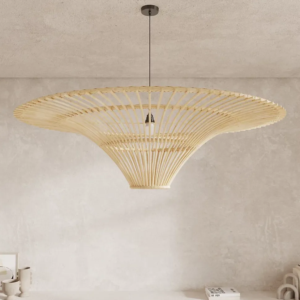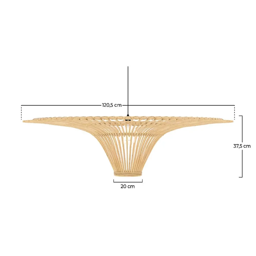 Dimensions : Diamètre : 120.5 cm |Hauteur : 34,5 cm // Entretien : Après avoir éteint l’abat-jour, ôter la poussière avec un chiffon doux ou la brosse souple d’un aspirateur. En cas de tache, utiliser une éponge légèrement imbibée d’eau savonneuse. Rincer et sécher immédiatement. // Matériaux : Rotin // Montage : Livré monté // Contenu : Informations complémentaires : Abat-jour vendu seul (sans fil) // Détails du colis : 124 x 124 x 40 cm