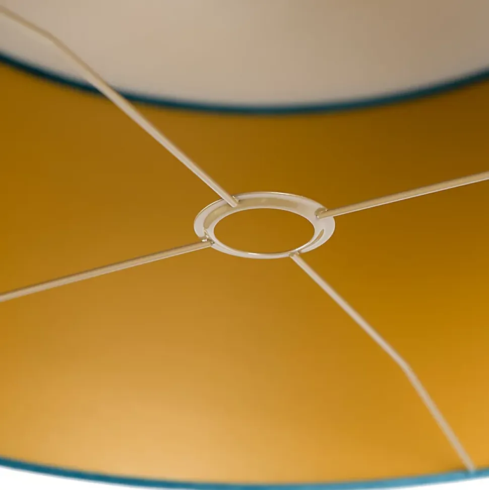 Un abat-jour élégant en velours avec une finition bleue et un intérieur doré. Avec cet abat-jour, vous pouvez donner à votre lampadaire ou suspension un aspect attrayant, l’abat-jour agissant comme un créateur d’ambiance. L’intérieur de l’abat-jour a une belle finition dorée. Cela crée un effet d’éclairage agréable dans la maison ! La combinaison du bleu et de l’or ajoute immédiatement une touche chaleureuse à votre salon ou à votre chambre. Cet abat-jour a un diamètre de 50 cm et une hauteur de 25 cm. Complétez-le avec une source lumineuse E27 et votre lampe est prête à briller dans votre maison.