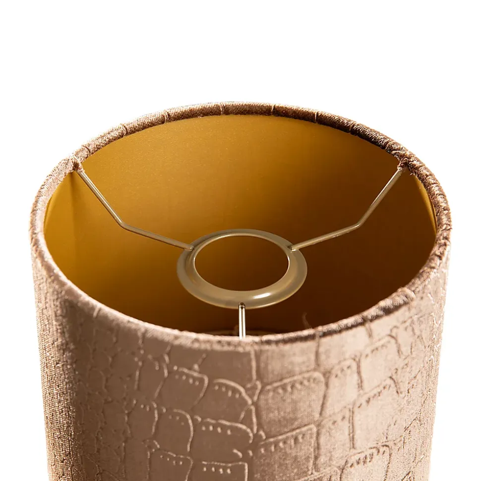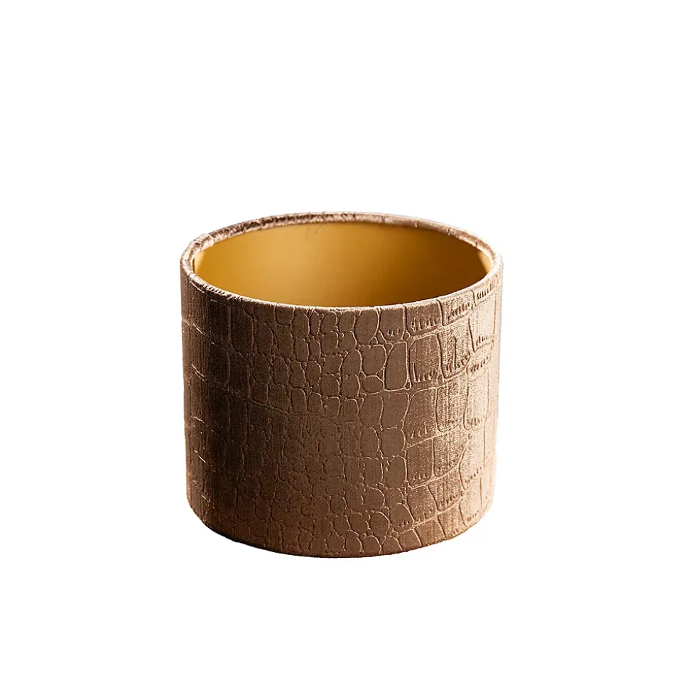 Ajoutez une touche de luxe à votre intérieur avec ce magnifique abat-jour en velours orné d’un motif crocodile. La texture riche de l’abat-jour, combinée à l’intérieur doré chaud, crée un effet chic et atmosphérique lorsque la lumière est allumée. Le motif crocodile ajoute une touche ludique et contemporaine qui s’harmonise parfaitement avec les intérieurs modernes et classiques. Avec un diamètre de 18 cm et une hauteur de 14 cm, cet abat-jour est idéal pour les lampes de table, les lampadaires ou les suspensions, et rehausse toute pièce d’un niveau d’élégance supérieur. Offrez un style élégant à votre éclairage et commandez cet abat-jour unique dès aujourd’hui !