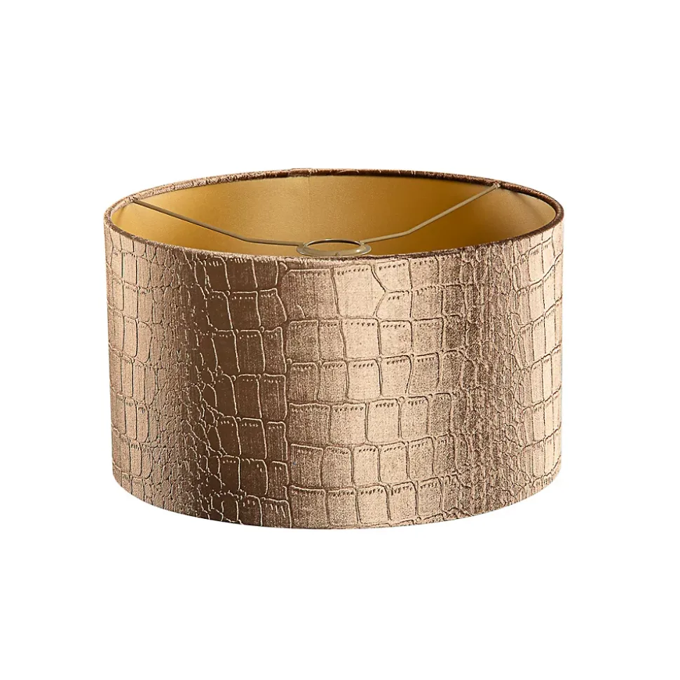 Ajoutez une touche d’extravagance à votre intérieur avec cet élégant abat-jour en velours effet crocodile et intérieur doré. Le magnifique imprimé crocodile couleur bronze chaud confère à l’abat-jour un look unique et luxueux qui s’adapte parfaitement à un intérieur moderne ou classique. Grâce à son intérieur doré, la lampe diffuse une lumière chaude et atmosphérique créant instantanément une ambiance chaleureuse. Avec un diamètre de 35 cm et une hauteur de 20 cm, cet abat-jour est idéal pour les lampes de table et les suspensions. Optez pour l’élégance avec une touche exotique et faites de votre éclairage un véritable accroche-regard !