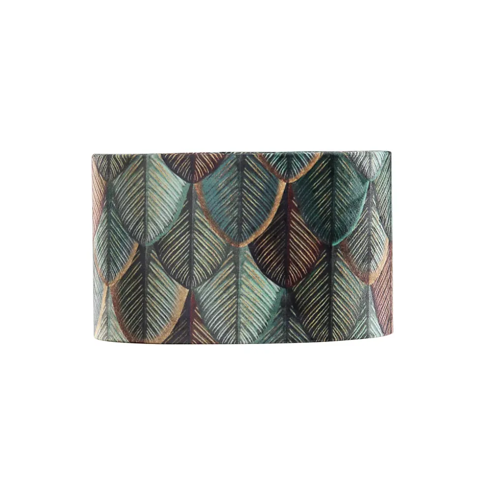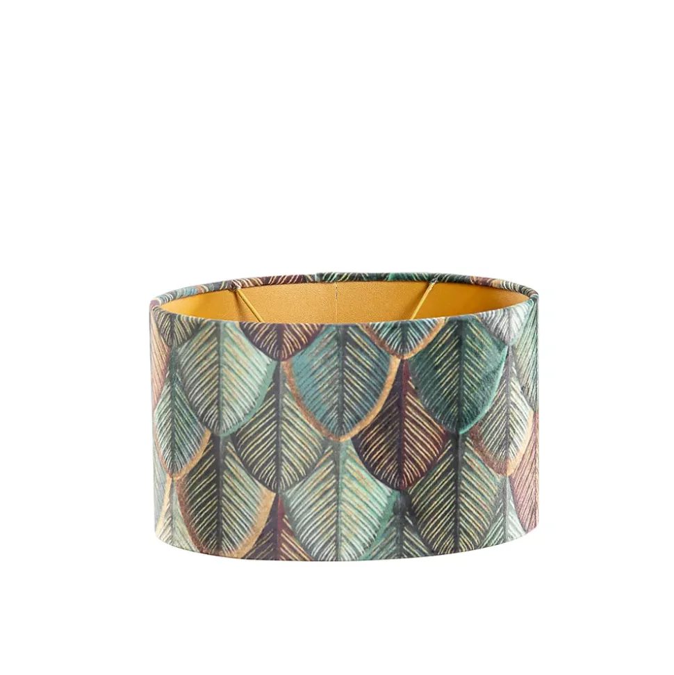 Apportez une touche ludique et naturelle à votre intérieur avec cet abat-jour en velours compact orné d’un motif feuilles et d’un intérieur doré. Le motif feuilles éclatant dans des tons chauds de vert et de brun ajoute une touche de nature à votre intérieur, tandis que l’intérieur doré crée une douce lueur chaleureuse lorsque la lampe est allumée. Avec ses dimensions modestes de 25 cm de diamètre et 15 cm de hauteur, cet abat-jour est idéal pour les petites lampes de table ou les appliques murales, parfait pour une amélioration subtile mais élégante. Ajoutez de la chaleur et du caractère à votre espace – cet abat-jour unique est un bel ajout à tout intérieur !