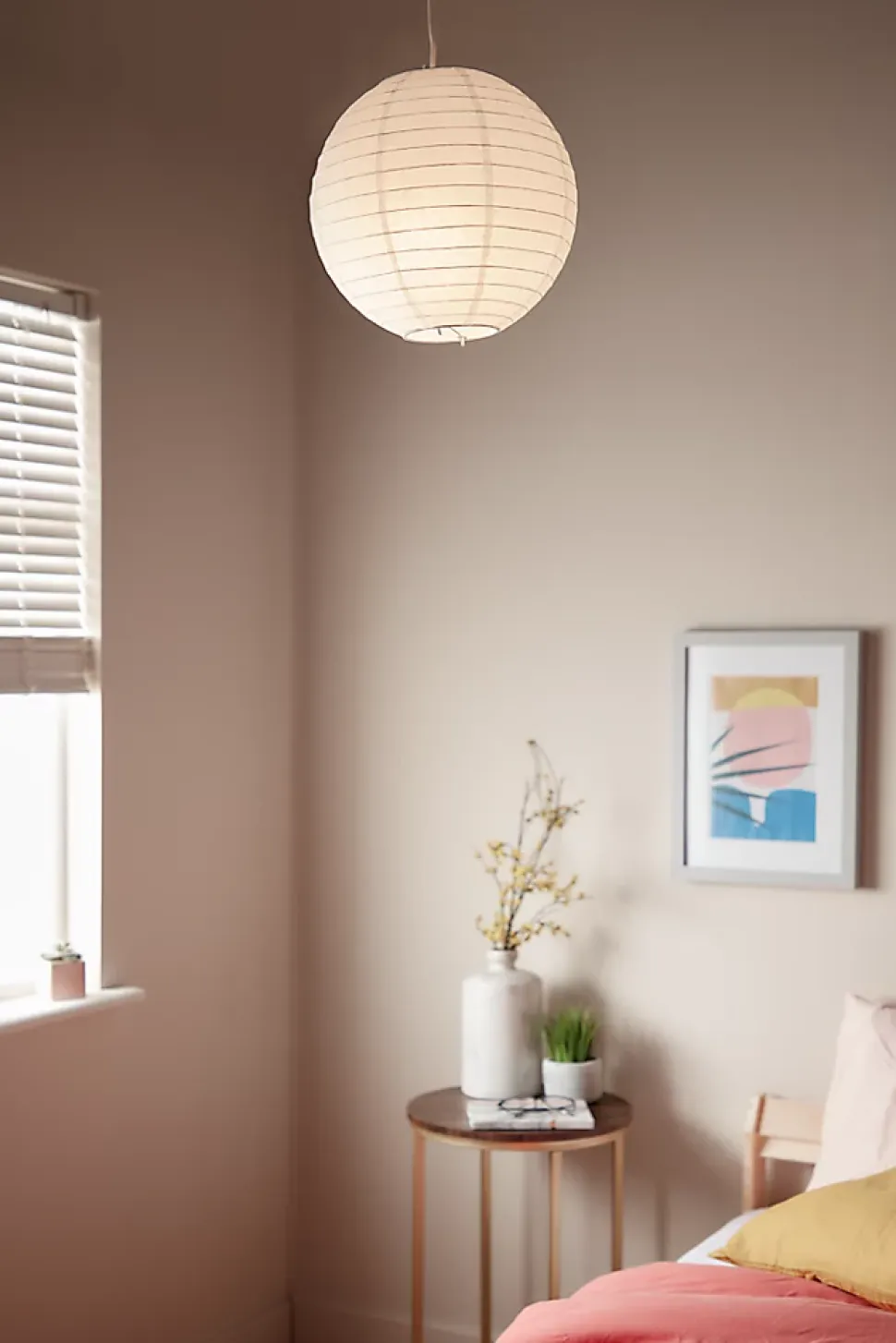 - L’abat-jour en papier apporte une lumière douce et crée une atmosphère chaleureuse et accueillante