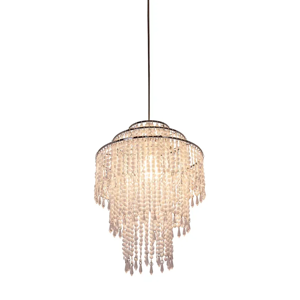 La suspension Lina de notre collection est un véritable accroche-regard pour chaque espace de vie. Les luminaires suspendus vous permettent de créer un éclairage clair et focalisé – un éclairage optimal pour les tables de salle à manger, les îlots de cuisine, les espaces de travail ou toute zone nécessitant une lumière ciblée. Elles aident à mettre en évidence une zone spécifique et créent une source de lumière claire pour les activités. Un aspect décoratif et une forme en dégradé font de ce luminaire de style boho un élément indispensable pour tous ceux qui apprécient un aménagement harmonieux. Le luminaire clair/transparent en métal et plastique attire immédiatement tous les regards. Le diamètre de la suspension est de 32 cm et sa hauteur de 43 cm. Elle est la solution parfaite pour votre éclairage intérieur. Vous pouvez changer vous-même l’ampoule, ce qui vous permet d’économiser du temps et de l’argent. Ce luminaire est conforme à la classe 2. Cet appareil est conçu pour fonctionner sur le réseau électrique et fonctionne avec une tension de réseau de 220-240V ~ 50Hz. Le luminaire a une puissance totale de 40 watts. Avec notre suspension exclusive, vous créez la lumière parfaite pour toutes les ambiances et ajoutez une touche de luxe et d’élégance à votre intérieur.