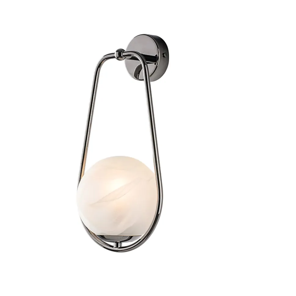 Afrodite – Applique 1 lumière en fer chromé noir avec sphère 14 mm Mesures du produit : H.36 – L.16 – P.19Nombre d’ampoules : 1xE14Puissance : 42 watts maximumFinition : Chrome noirCe produit est fabriqué artisanalement. De légères imperfections visuelles sont considérées comme des caractéristiques naturelles du travail manuel