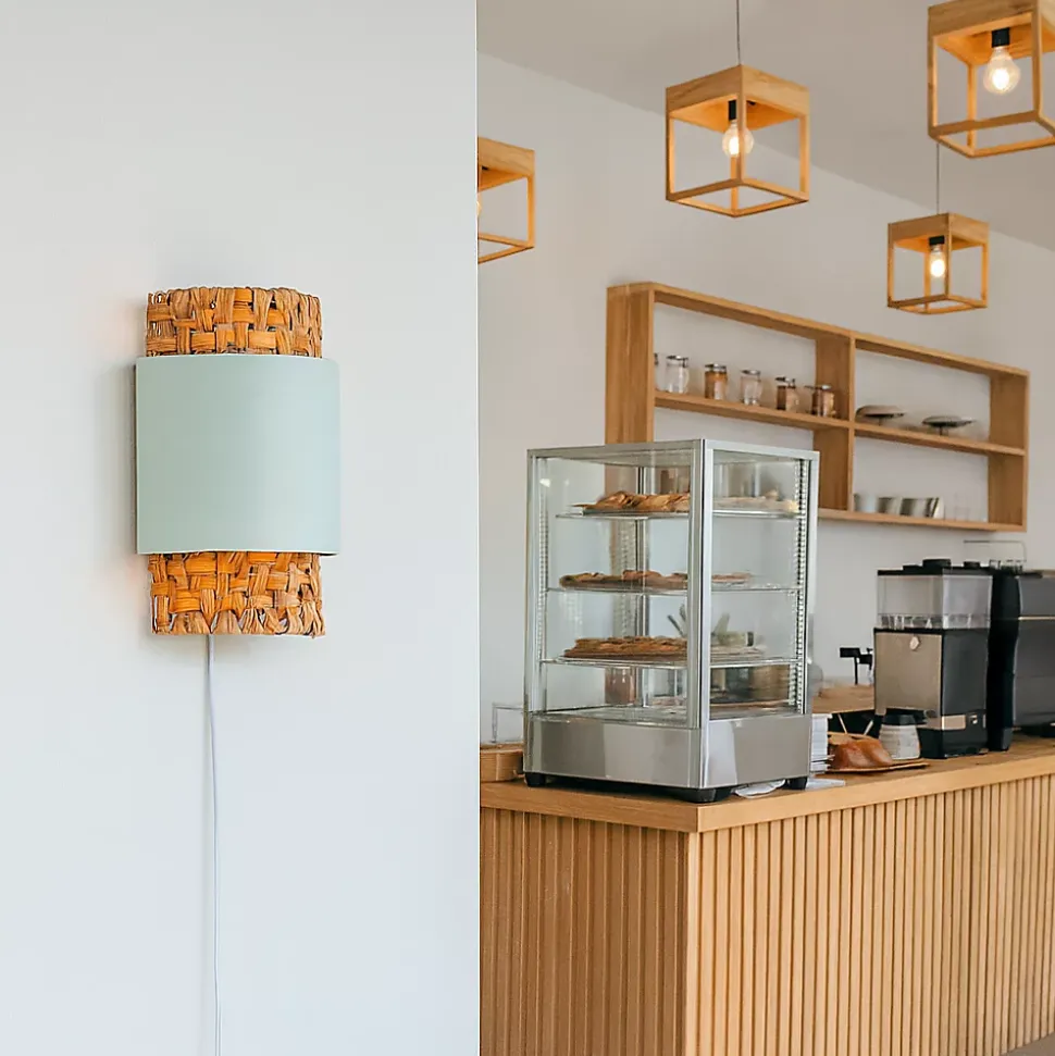 L’applique murale VÉLA associe la chaleur du rotin naturel à l’élégance du tissu, créant une lampe décorative qui apporte sérénité, confort et style artisanal à tout espace.Son design aux lignes douces et matériaux organiques en fait une pièce polyvalente et intemporelle, idéale pour les intérieurs résidentiels ou les espaces commerciaux au caractère affirmé.Design et matériauxL’applique VÉLA est fabriquée avec une structure en rotin naturel tressé à la main, entourant un abat-jour en tissu soigneusement conçu pour diffuser une lumière chaude et accueillante.Cette combinaison de matériaux transmet harmonie et équilibre, s’intégrant parfaitement dans les styles bohème, méditerranéen, scandinave ou rustique moderne.Disponible en deux couleurs :Vert d’eau, idéal pour des ambiances fraîches et relaxantes.Beige, parfait pour créer des espaces chaleureux et naturels.Installation pratique et polyvalenteLe modèle est équipé d’un câble avec prise et interrupteur ON/OFF, permettant une installation simple sans travaux.Il peut également être connecté directement au point lumineux du mur pour une installation fixe.Éclairage personnalisableL’intensité et la tonalité de la lumière dépendent de l’ampoule LED E27 utilisée (non incluse).Vous pouvez choisir une lumière chaude, neutre ou froide, ou encore des ampoules CCT ou RGB pour adapter l’ambiance selon vos envies.Caractéristiques techniquesType de douille : E27Ampoule : Non incluseMatériaux : Rotin naturel et tissuCouleurs disponibles : Vert d’eau / BeigeType de connexion : Avec câble, prise et interrupteur ON/OFFStyle : Naturel, Bohème, MéditerranéenInstallation : Fixation murale directe ou par priseDimensions : Largeur 23,2 cm · Hauteur 28 cm · Profondeur 11cmApplications : Chambre, salon, salle à manger, couloir, café ou restaurantL’applique murale VÉLA est la fusion parfaite entre nature et modernité, enveloppant vos espaces d’une atmosphère chaleureuse, relaxante et authentique. »