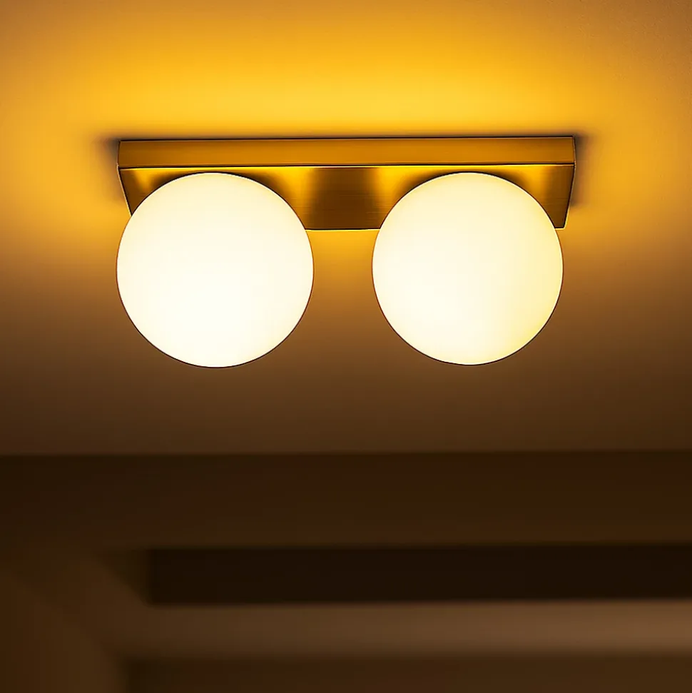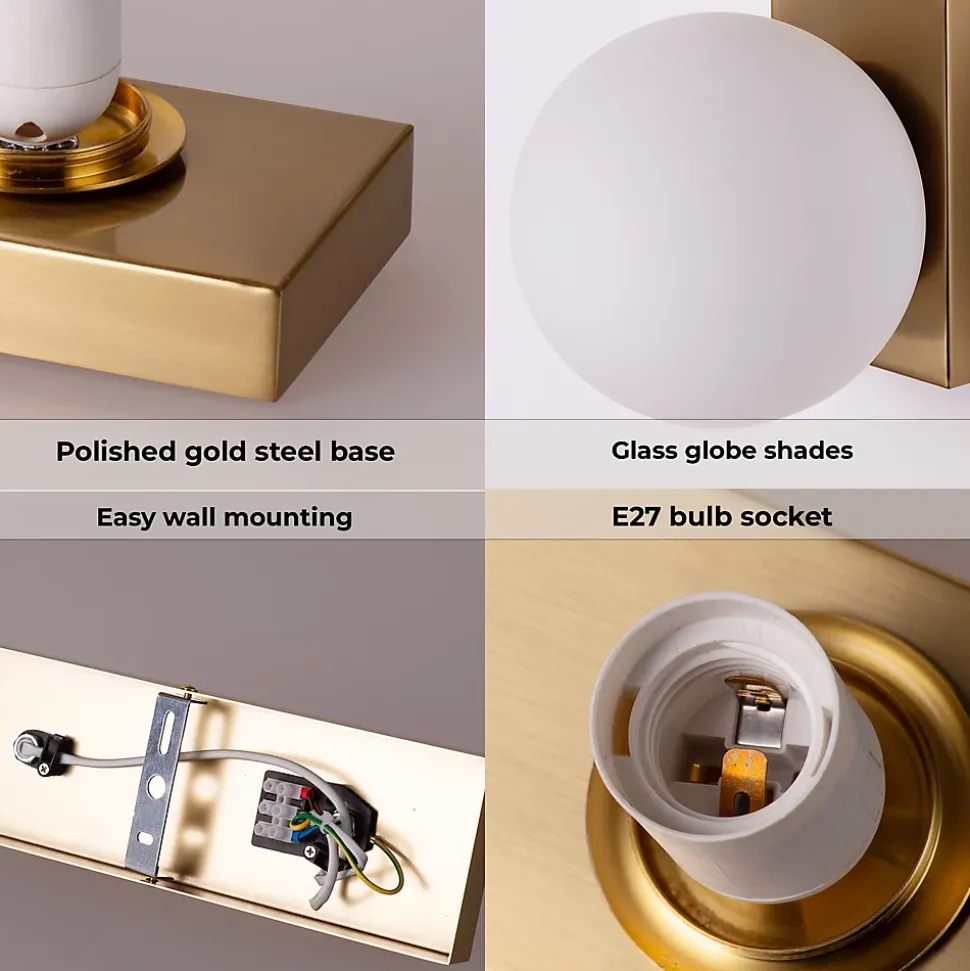 Applique Murale « Bolonia » – Double Sphère en Verre Opale et Base Rectangulaire Finition Chromée ou Dorée, E27L’applique murale « Bolonia » allie l’élégance du design contemporain à la douceur intemporelle du verre opale. Sa structure minimaliste se compose d’une base rectangulaire en métal —disponible en finition chromée ou dorée— qui soutient deux sphères en verre blanc mat, diffusant une lumière chaude et enveloppante.Parfaite pour apporter une touche sophistiquée aux salons, chambres, couloirs ou entrées, le modèle « Bolonia » est à la fois une solution d’éclairage fonctionnelle et un élément décoratif adapté aux styles modernes, classiques ou art déco.Caractéristiques principales :Design élégant avec double globe en verre opaleBase rectangulaire en métal, finitions : chromée brillante ou dorée chaudeDouilles E27 compatibles avec des ampoules LED G45 (non incluses)Lumière douce idéale pour les espaces de détente ou de passageInstallation facile avec matériaux de haute qualitéDisponible en deux finitions, l’applique « Bolonia » transforme n’importe quel mur en point focal plein de charme.