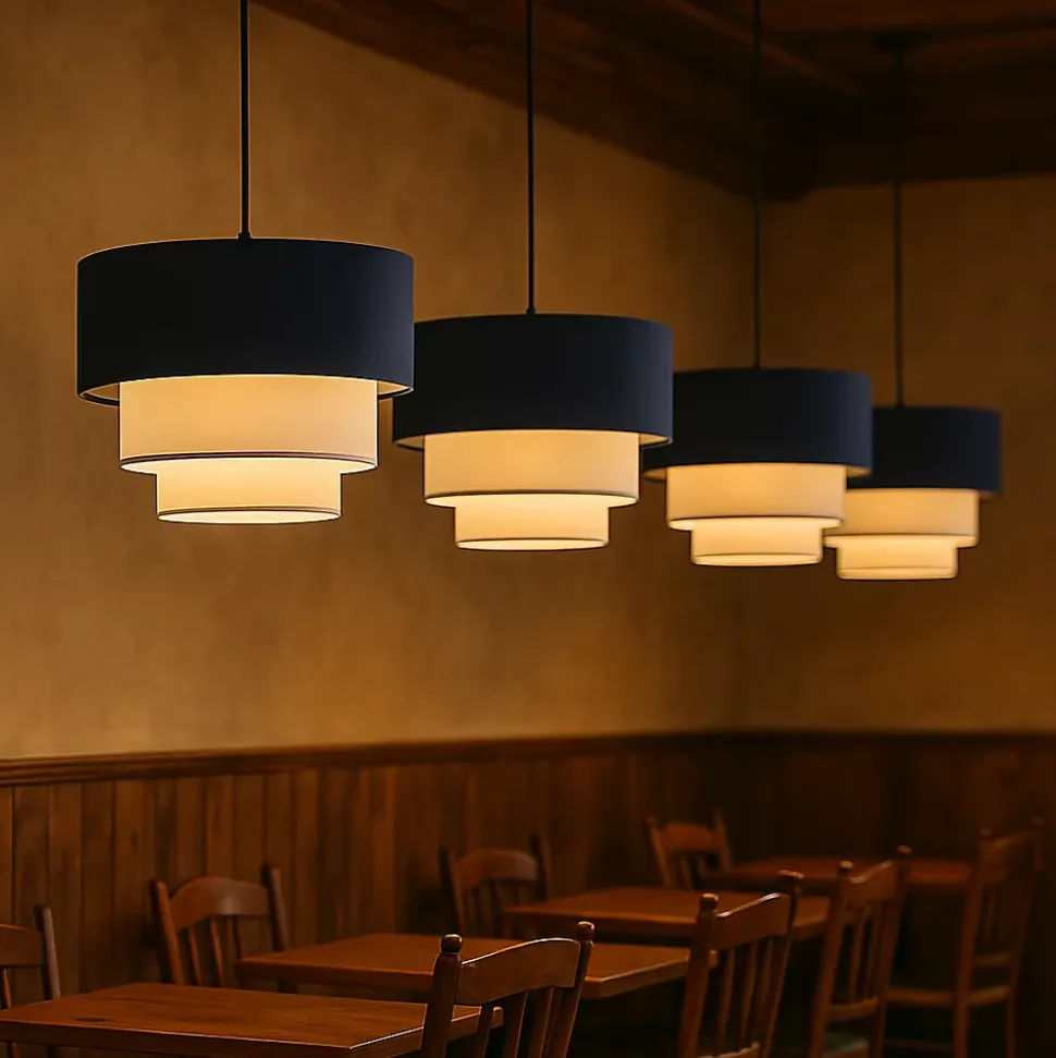 ALPINALUZ Suspension Textile à Trois Niveaux en Blanc et Bleu Combinés, 38 cm x 30 cm, Douille E27