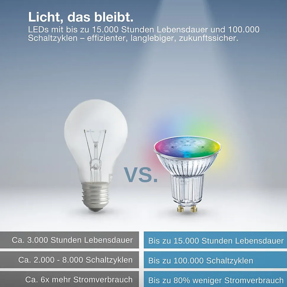 - Conception : Forme de réflecteur classique pour le spot LED SMART+ GU10 de 4,7 W ; idéal pour des accents et des spots d’éclairage ciblés