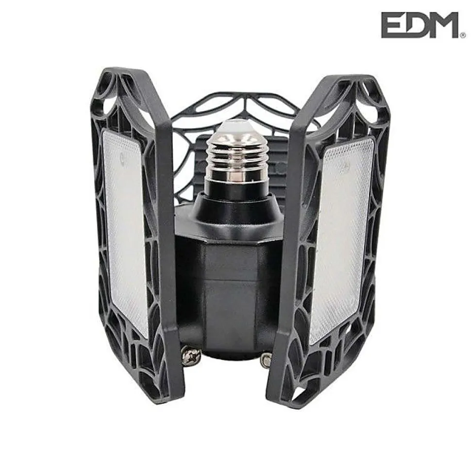 Ampoule feuille led e27 60w 6.000 lm 6.400k lumière froide edm. Cette ampoule est composée de 3 luminaires pliables jusqu’à 90, degré d’ouverture de la lumière 180 à 360, en plastique et aluminium.ip20, 72 leds, idéal pour garages, entrepôts… 26×12,5cm