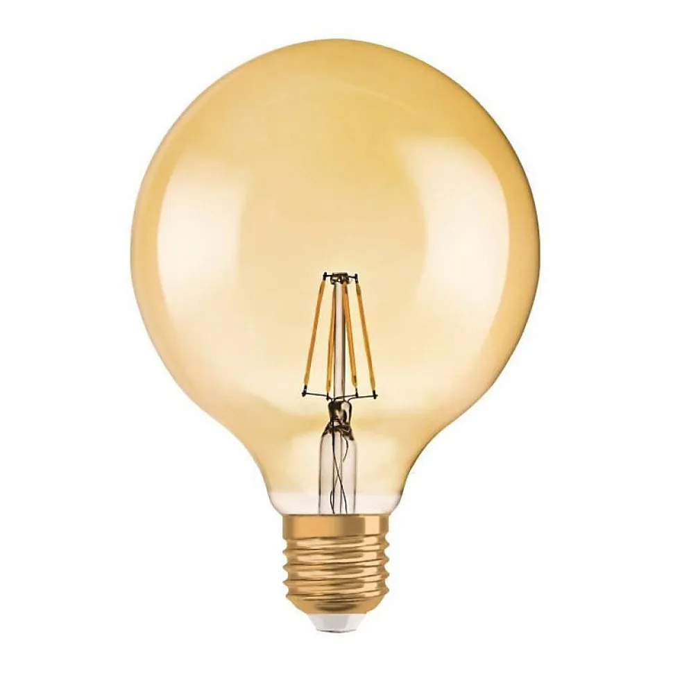 Ampoule Globe LED OSRAM Edition 1906, design vintage avec filament LED, 7W consommation, diamètre 125 mm, base E27, lumière blanc chaud 2400K, dimmable, 725 lumens, longue durée de vie de 15000 heures, compatible variateurs pour ambiance chaleureuse et rétro.