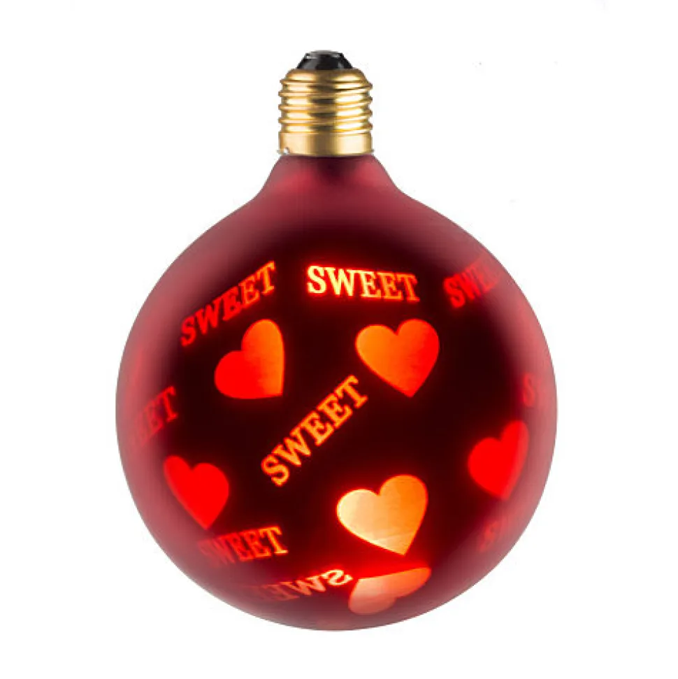PING vous propose :Cette ampoule thème LOVE qui créera une ambiance cosy et romantique.Grâce à cette ampoule thématique que vous pourrez visser sur tout type de luminaire, il vous sera aisé de générer une ambiance tamisée idéale pour le charme et la séduction. Cette ampoule sphérique est teintée sur toute sa surface d’une peinture rouge sombre et laisse diffuser par ajour des messages « LOVE » dans une teinte rouge tape-à-l’oeil.Innovant dans le monde de l’éclairage, cette ampoule contenant une série de LEDs intégrées supplante techniquement parlant les ampoules à incandescence et les ampoules fluo-compact. Cette ampoule à LED se caractérise par son éclairage puissant et uniforme, sa longévité dans le temps et sa très faible consommation énergétique. Sa mise en place est aussi simple que les ampoules standards à incandescence car cette ampoule à LED est munie d’un culot E27 (vissable) et nul besoin d’abat-jour.Composée de LEDs protégées par le verre qui l’englobe, cette ampoule vous offrira une éclairage radial à 360°.Les plus du produit :- Sobriété énergétique et longévité dans le temps- Nul besoin d’abat-jour- Lumière rouge vive- culot standard vissable E27<span style= »color:#2c9