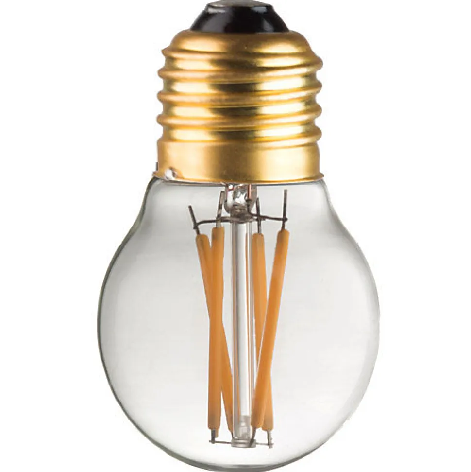 Ping vous propose :Cette ampoule LED G45 E27 de style classique. Pour donner un côté vintage ou industriel à votre déco intérieur, rien de mieux que cette ampoule en verre transparente en forme de bulbe, laissant apparaître les filaments lumineux de LEDs effilés droits croisés. Cette ampoule se caractérise par son éclairage puissant et uniforme, sa longévité dans le temps et sa très faible consommation énergétique. Une lumière blanche chaude de 3000 K, lumière ambiante pour n’importe quel espace. Sa mise en place est aussi simple que les ampoules standards à incandescence car cette ampoule à LED est munie d’un culot E27 (vissable) et nul besoin d’abat-jour.Composée de LEDs protégées par le verre clair qui l’englobe, cette ampoule vous offrira une éclairage radial à 360°.Les plus du produit :- Economie énergétique- Nul besoin d’abat-jour- Eclairage radiant 360°- longévité dans le tempsCaractéristiques:Marque: EcolichtType : G45Libellé 1 : G45 CLASSICCulot : E27</