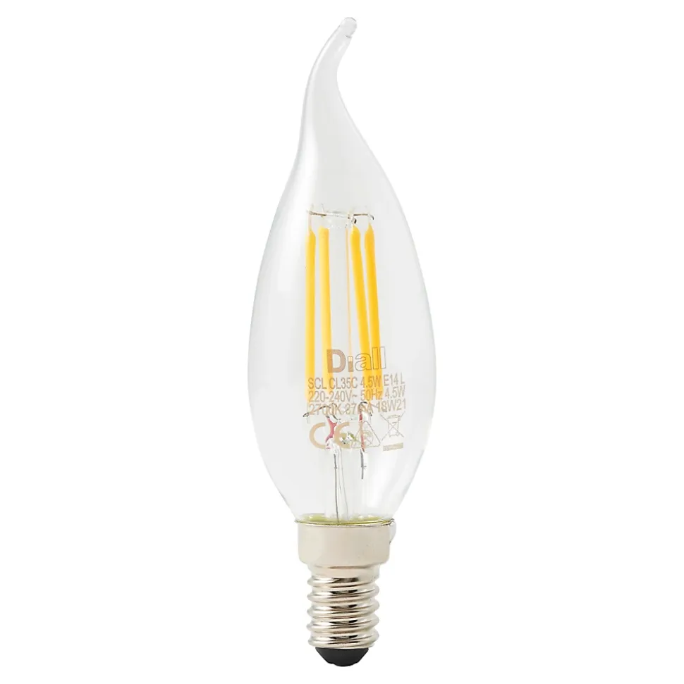 Ampoule LED à filament flamme transparent E14 470lm 3.4W = 40W Ø3.5cm Diall blanc chaud