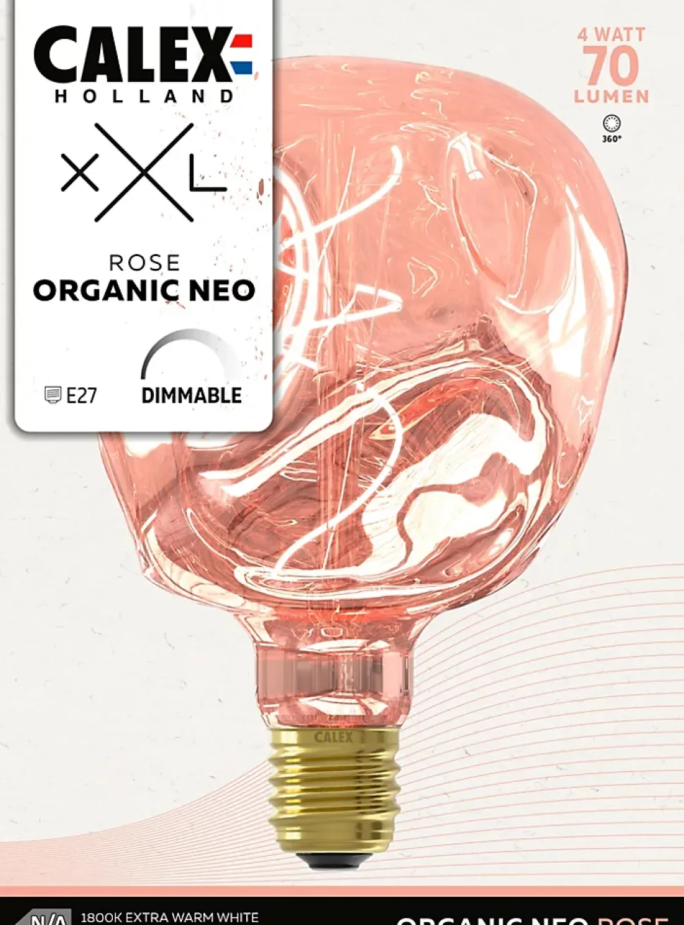 - L’ampoule Calex Organic Neo est dotée d’un culot E27 standard et s’intègre très bien dans les suspensions ou suspensions Calex. Les sources lumineuses de la série Calex XXL peuvent également être facilement combinées entre elles. Vous donnez ainsi un petit plus à l’intérieur de votre chambre ou de votre salon.