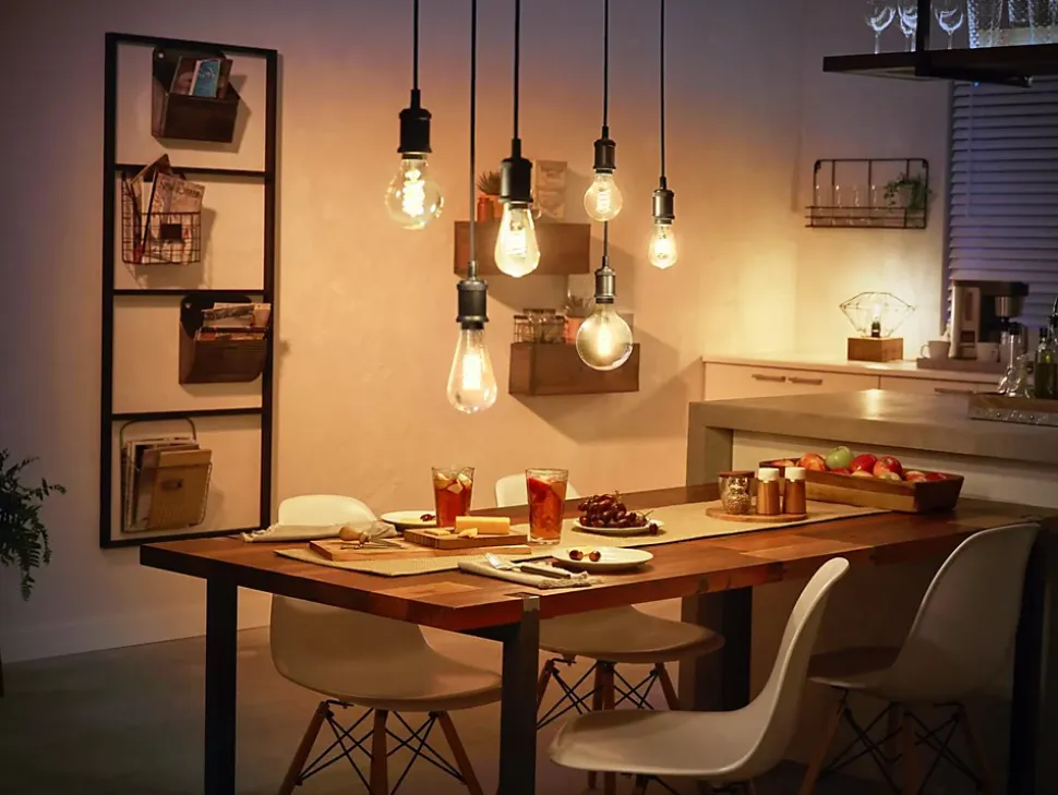 - Avec son design allongé, l’ampoule ST72 est la version un peu plus grande de l’ampoule à filament style Edison. Elle est dotée de la technologie Bluetooth, d’un filament spiralé et d’un élégant revêtement ambré pour une touche moderne sur un design vintage. Utilisez-la avec les commandes Bluetooth ou ajoutez un Hue Bridge pour débloquer plus de fonctionnalités d’éclairage connecté.