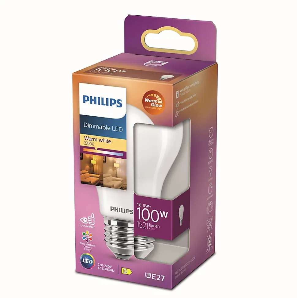 Ampoule LED dimmable E27 A60 1521lm 10.5W IP20 variable blanc chaud à blanc neutre Philips