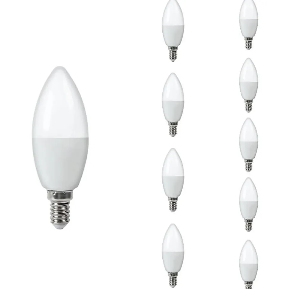 Rénovez tous vos petits luminaires avec ce pack de 10 ampoules LED E14 4.8W C37. Pratique, esthétique et économique, idéal pour un éclairage harmonisé.Caractéristiques techniques du lot d’ampoules LED flamme 4.8WUn ensemble compact et performant, pensé pour vos luminaires à petit culot :Puissance unitaire : 4,8W, équivalent 48W incandescence.Luminosité de 470 lumens par ampoule, soit 4 700 lumens au total.Angle de diffusion de 180°, pour une lumière douce et bien répartie.Forme flamme C37, design soigné, adapté aux luminaires visibles.Douille E14, compatible avec les lampes à petit pas de vis.Couleurs d’éclairage : blanc chaud, neutre ou froid disponibles, selon l’ambiance souhaitée.Indice de protection IP20 : pour intérieur.Durée de vie moyenne : 20 000 heures.IRC ≥ 80, pour un rendu de couleur naturel.Tension standard 220-240V.Certification CE & RoHS, avec garantie 2 ans.Pourquoi opter pour ce pack LED C37 E14 4.8W x10 ?Ce pack de 10 ampoules LED flamme vous permet de remplacer ou équiper l’ensemble de vos luminaires décoratifs avec des sources durables, uniformes et de qualité. Leur design discret et leur faisceau à 180° assurent une diffusion lumineuse douce, parfaite pour les ambiances feutrées. Idéal pour des hôtels, chambres, salons, ou bâtiments anciens modernisés.Installer vos 10 ampoules LED flamme en toute simplicitéÉteignez l’alimentation électrique.Vissez chaque ampoule dans une douille E14.Testez l’installation : allumage immédiat sans cligno