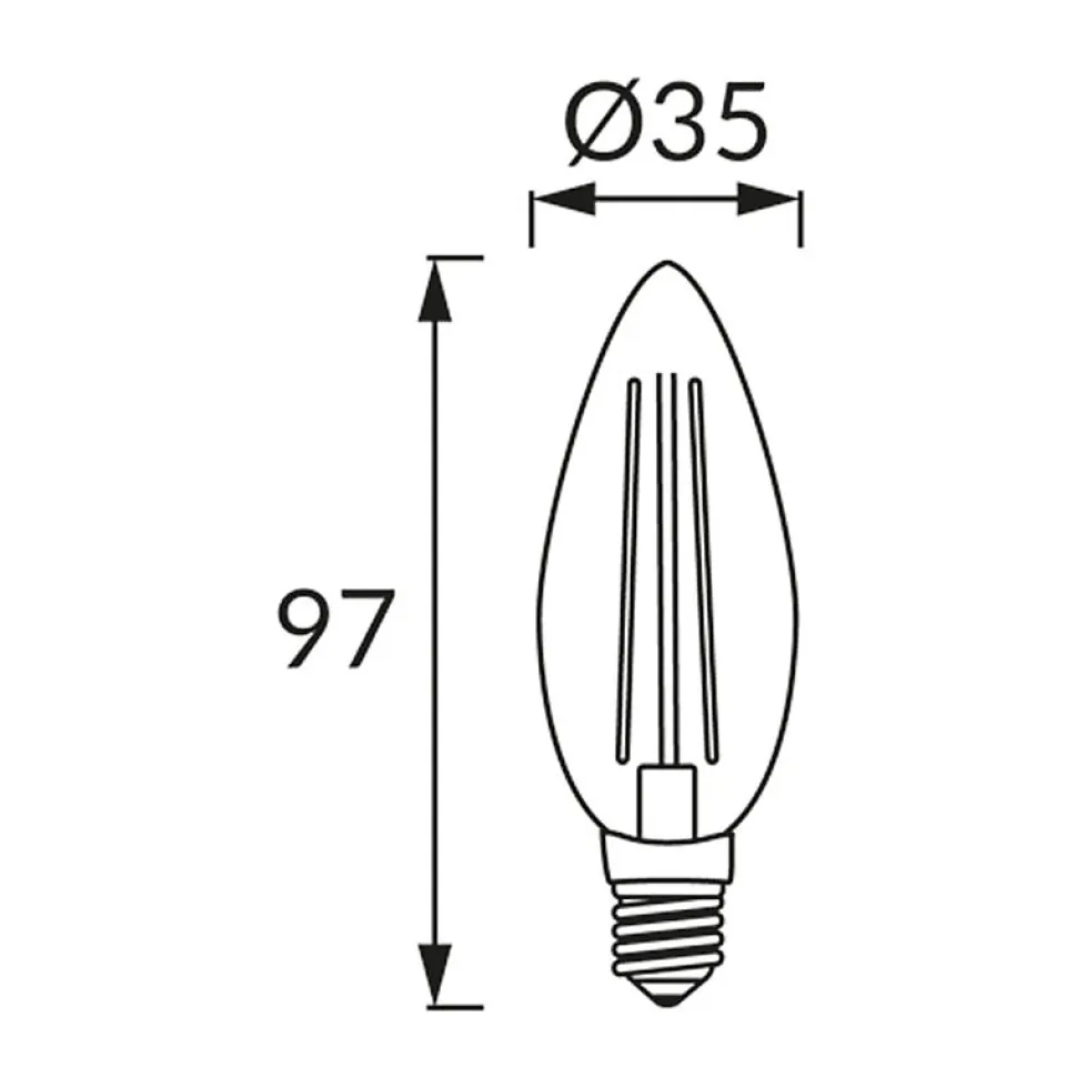 Apportez une touche de raffinement à votre éclairage avec l’Ampoule LED E14 C35 4W Filament. Sa forme flamme imite parfaitement le style des ampoules traditionnelles tout en offrant tous les avantages de la technologie LED : une efficacité énergétique supérieure et une longue durée de vie.Caractéristiques de l’Ampoule LED E14 C35 4W FilamentCompatibilitéL’installation est rapide et facile : il suffit de visser l’ampoule dans une douille E14. Grâce à sa forme C35, elle est particulièrement adaptée aux lustres, appliques murales et lampes de table où l’esthétique joue un rôle important. Son design flamme s’intègre parfaitement dans des environnements à la décoration classique ou moderne. Remplacez les ampoules de vos luminaires ou optez pour un nouvel éclairage facilement avec Silamp.Conception et économieCette ampoule LED en forme de flamme est l’option idéale pour remplacer vos anciennes ampoules à incandescence tout en conservant un style classique et décoratif. Son filament LED visible donne un aspect rétro charmant, tout en garantissant une consommation d’énergie réduite. Avec un excellent rapport lumens/watt, cette ampoule éclaire vos pièces de manière homogène et efficace, tout en ajoutant une touche de charme à vos luminaires grâce à sa forme flamme.De plus, vous bénéficiez gratuitement d’une garantie de 2 ans sur l’ensemble de vos produits. Silamp met à votre disposition une équipe de professionnels pour vous conseiller et un service après-vente attentif pour vous accompagner.