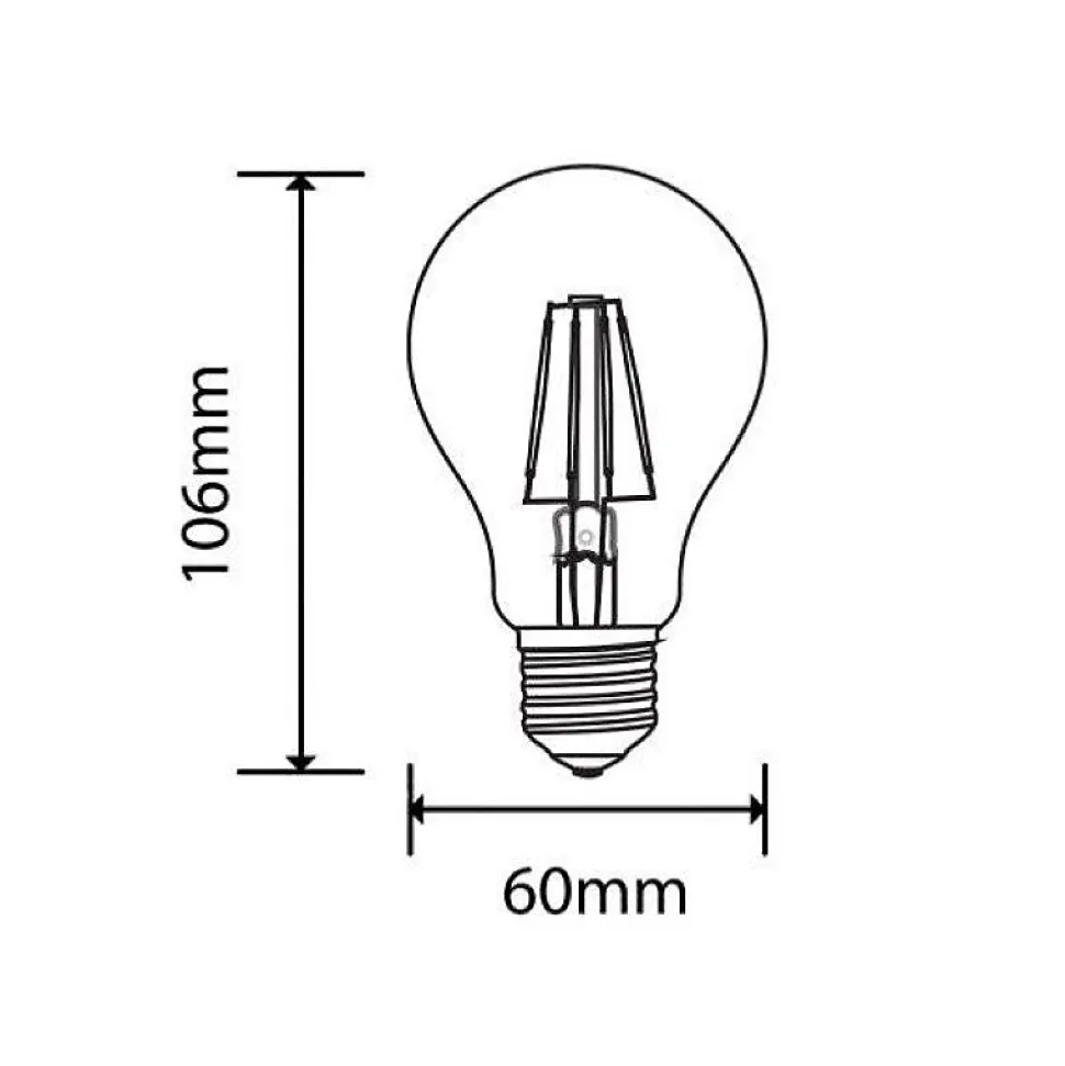 Faites confiance en notre Ampoule LED E27 Dimmable 6W A60 Filament pour éclairer votre pièce !Caractéristiques de l’Ampoule LED E27 Dimmable 6W A60 FilamentDimmable Cette ampoule LED au design original qui se veut rétro apportera une touche vintage à votre intérieur.Ce design ne néglige pas pour autant son rendement lumineux, bien au contraire! Cette ampoule LED de 6W vous offre une luminosité de 600 lumens, suffisante pour éclairer une pièce. Son culot E27 lui permet de s’adapter à la grande majorité des luminaires d’intérieur. De plus, le grand atout de cette ampoule LED est sa fonctionnalité dimmable, vous pouvez donc atténuer comme augmenter son intensité si vous la reliez à un variateur. N’hésitez pas à jeter un coup d’œil à nos autres ampoules LED E27 !