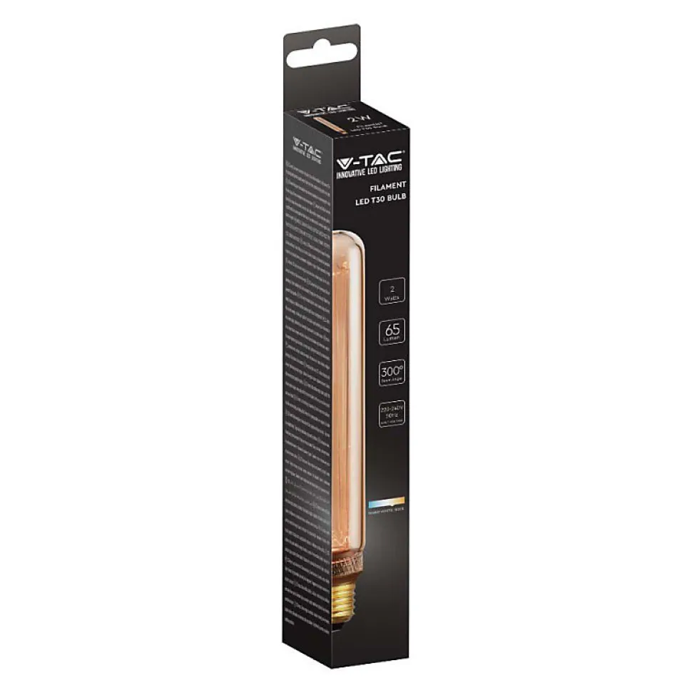 Ampoule LED E27 T30 Ambre – Filament Vintage – 2W – 1800K – Verre