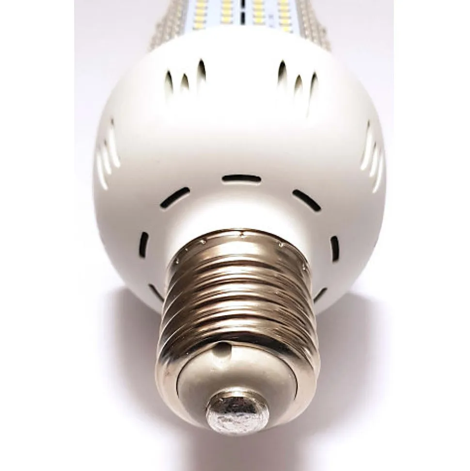 PING vous propose :Cette « méga-ampoule » LED au culot E40 pour un éclairage total et puissant.Utilisée normalement sur le plan professionnel pour l’éclairage public ou sur des chantiers, cette ampoule génère un éclairage général avec une efficacité maximale. Préparez vos lunettes de soleil !Par rapport aux anciens formats d’éclairage par incandescence, la technologie LED permet d’économiser jusqu’à 80% d’énergie et a une durée de vie supérieure à 50 000 heures en nécessitant moins d’entretien !La couleur de l’éclairage est neutre (4000K).Cette ampoule technologique intègre un dissipateur thermique de haute qualité qui permet une réduction considérable des émissions de chaleur.Les plus du produit :- Sobriété énergétique et longévité dans le temps- Eclairage radial puissant à 360°- Lumière blanc neutre (4000k)- Culot vissable E40 adaptable en E27 standard moyennant l’usage d’un adaptateurCaractéristiques : – Marque: INOLIGHTS- Culot : E40- Eclairage LED- Puissance : 30W- Lumens : 5200 LM- Etanchéité : IP25- Angle : 360°- Durée = 50000 heures- Non compatible avec un variateur.- Norme CEDimensions : 20 x 9 x 9 cmPoids : 414 g