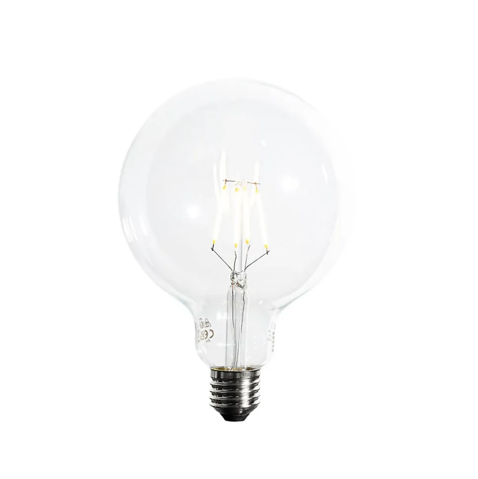 Cette ampoule LED E27 dimmable avec filament spiralé au format G125 apporte une ambiance chaleureuse et élégante à votre intérieur. Avec une température de couleur de 2700K, cette ampoule procure une lumière blanc chaud douce, idéale pour créer une atmosphère cosy. Son globe en verre généreux laissant apparaître le filament offre un look vintage élégant, parfait pour les luminaires ouverts et les suspensions où l’ampoule elle-même peut être un élément décoratif. Avec une consommation de seulement 5W et un flux lumineux de 450 lumens, cette ampoule offre non seulement une efficacité énergétique, mais aussi une belle luminosité. La fonction dimmable vous donne la liberté d’ajuster l’intensité lumineuse selon votre humeur ou l’occasion – d’une lumière vive à une douce lueur relaxante. Ajoutez cette ampoule LED élégante à votre intérieur et profitez d’une ambiance et d’un caractère à la fois !