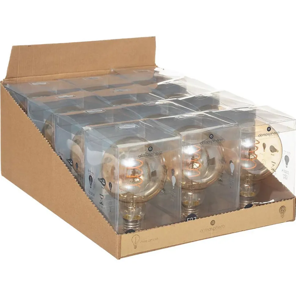 Pour créer un intérieur élégant et contemporain, les ampoules sont désormais des pièces décoratives à part entière. Essayez l’ampoule LED « Globe » à filament droit Atmosphera !Une ampoule qui embellit votre pièceL’ampoule « Globe » est composée d’un filament droit qui lui confère un design sobre facile à intégrer. Elle permet de délimiter un espace dans votre salon ou d’éclairer des objets déco sur une étagère. Le résultat est surprenant !Cette ampoule « Globe » s’adapte aux suspensions en métal ou en bois Atmosphera à 4 ampoules.Le petit plus décoPlacé sur une suspension à plusieurs ampoules, ce modèle « Globe » diffusera une lumière agréable au-dessus d’une table à manger.Fiche d’information produit : voir notice