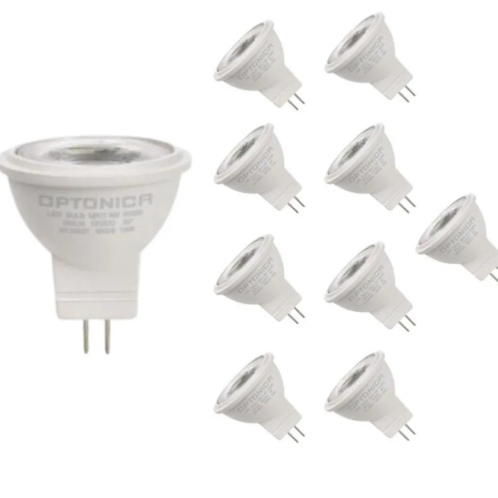 Optimisez l’éclairage de vos petits luminaires avec ce pack de 10 ampoules LED GU4 MR11 3W 12V. Compactes, efficaces et économiques, elles remplacent avantageusement des ampoules halogènes de 30W.Spécifications des ampoules LED 3W GU4 MR11Puissance : 3W (équivalent 30W halogène)Flux lumineux : 210 lumensAngle de diffusion : 38°Température de couleur au choix : blanc chaud, neutre ou froidTension : 12V (utilisation avec transformateur LED)Dimmable : nonFormat compact : MR11 (longueur : 3,5 cm)Indice de protection : IP20 (usage intérieur)Indice de rendu des couleurs : Ra ≥ 80Durée de vie : ~25 000 heuresCertification : CE & RoHSGarantie : 2 ansLes points forts de ces ampoules LED MR11 12VCes ampoules LED GU4 sont parfaites pour une mise à niveau écoénergétique. Leur faisceau étroit de 38° les rend idéales pour un éclairage directionnel précis, tout en générant peu de chaleur. Grâce à leur longévité, elles réduisent la fréquence de remplacement et les coûts d’entretien. Le choix entre plusieurs températures de couleur permet d’adapter l’ambiance à chaque pièce.Installation des ampoules LED GU4 / MR11 3WAssurez-vous que le luminaire est équipé d’un culot GU4Vérifiez que l’installation est en 12V avec un transformateur compatible LEDCoupez l’alimentation électrique avant interventionInsérez l’ampoule en appuyant doucement dans la douilleRétablissez le courant et vérifiez le bon fonctionnementDans quelles pièces utiliser ces ampoules LED GU4 12V ?Avec leur puissance de 3W et leur faisceau directionnel, ces ampoules conviennent parfaitement pour l’éclairage de précision ou décoratif. Elles sont idéales dans des petits spots encastrés, vitrines, m