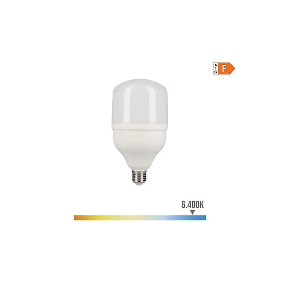 Cette ampoule LED industrielle de la marque EDM est dotée d’un culot E27 et d’une puissance de 20W pour une luminosité de 1700 lm et une température de couleur de 6400k. Elle offre une lumière froide et a une durée de vie de 25000 heures. Elle mesure ø 8 x 15 cm et fonctionne sous une tension de 220-240V. Elle est classée A+ et peut supporter une température de 200°C.