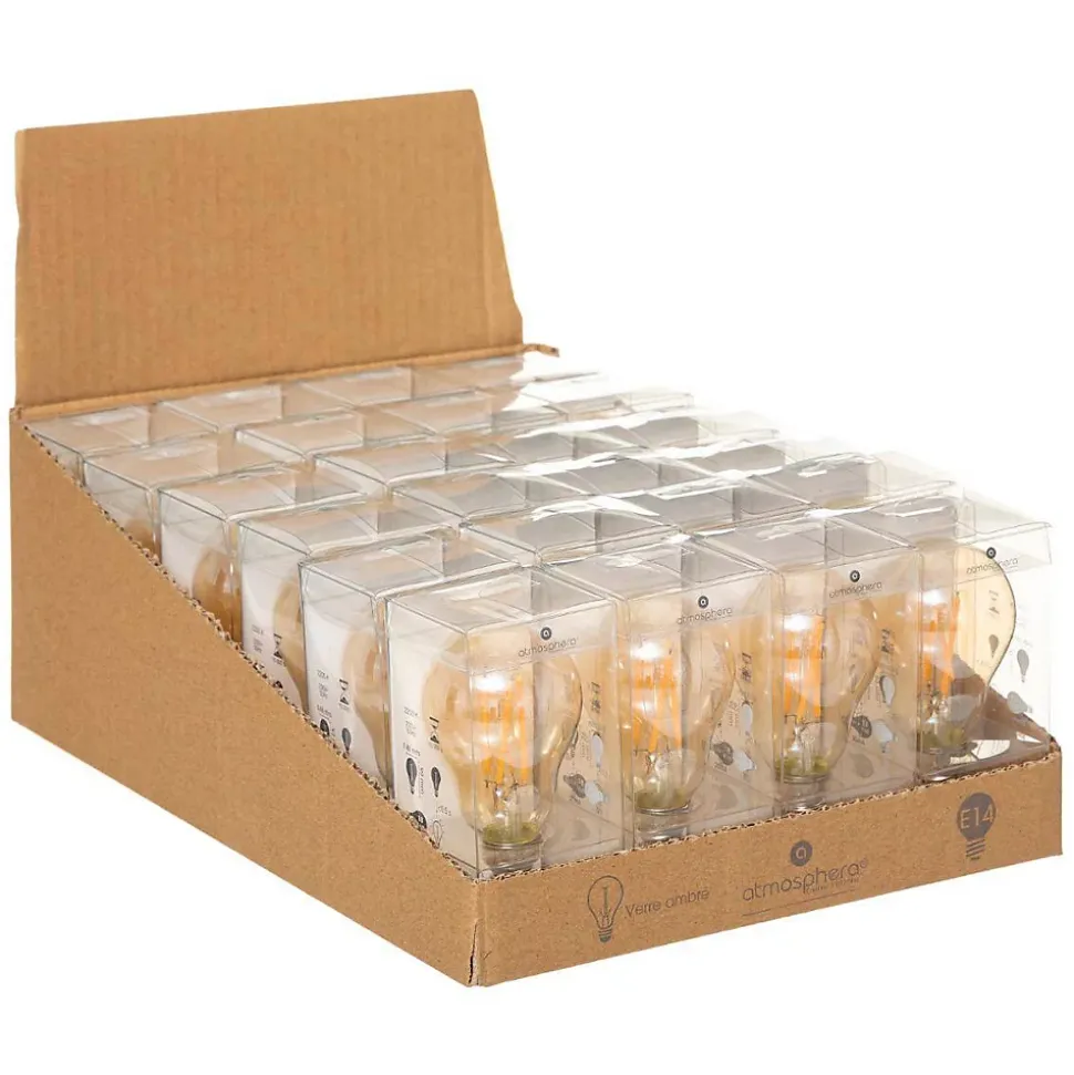 Vous cherchez une ampoule coup de coeur ? Atmosphera vous propose cette ampoule LED « Standard », propice à une ambiance glamour. Une ampoule design et moderne L’ampoule LED « Standard » ajoutera une touche design discrète à votre espace. Elle dégagera une lumière douce et vous séduira avec ses filaments droits apparents. Dans votre salon ou votre chambre, elle vous aidera à créer un univers élégant et chaleureux. Pour la mettre en avant dans vos différentes pièces, associez cette ampoule à des miroirs ou à des toiles contemporaines Atmosphera. Le petit plus déco Les plantes vertes seront vos alliées pour plonger dans un esprit plus nature.Fiche d’information produit : voir notice