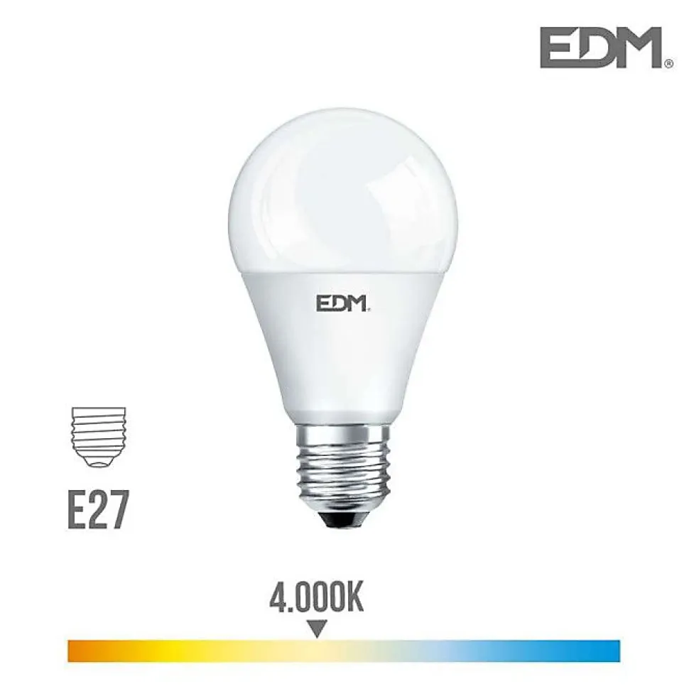 Optez pour cette ampoule LED standard E27 de la marque EDM pour une lumière du jour de 4000K. Avec une puissance de 20W et une durée de vie de 25000h, elle est idéale pour un éclairage efficace et durable. Cette ampoule a une forme standard et un culot E27.