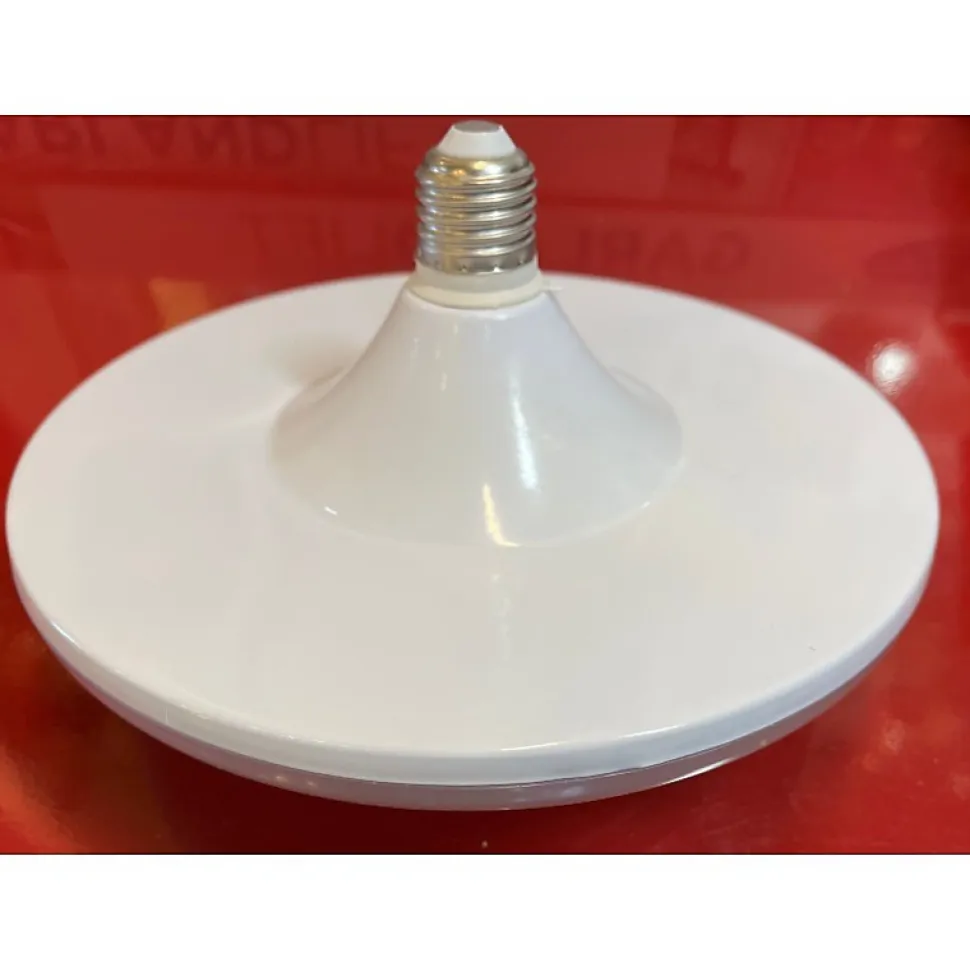Les caractéristiques techniquesCette ampoule Led UFO 43W vous fournira une agréable lumière blanc chaud pour une ambiance cocooning tout en vous permettant de substantielles économies d’énergie.Avec ses 4600 lumens, elle est idéale pour les luminaires de grande taille Elle remplacera efficacement vos anciennes ampoules tout en respectant l’environnement (ne contient pas de matières dangereuses comme le mercure, longue durée de vie générant moins de déchets).Les avantages esthétiquesCette ampoule Led vous fournira un éclairage très puissant avec son grand diamètre.