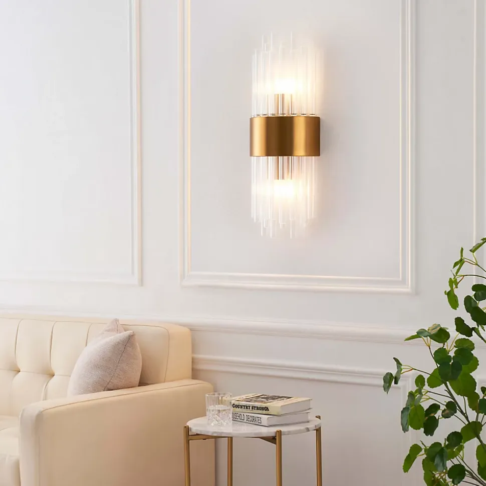 Plongez dans l’élégance avec l’applique murale Almeria, composée d’une structure en métal doré agrémentée de tubes en verre transparent. Ses dimensions de 52 cm de hauteur sur 20 cm de large accueillent deux ampoules de culot E14 (non incluses). Les pampilles subtilement disposées assurent un éclairage doux et agréable dans la pièce, ajoutant une touche d’art déco.) Assemblage à faire par vos soins (